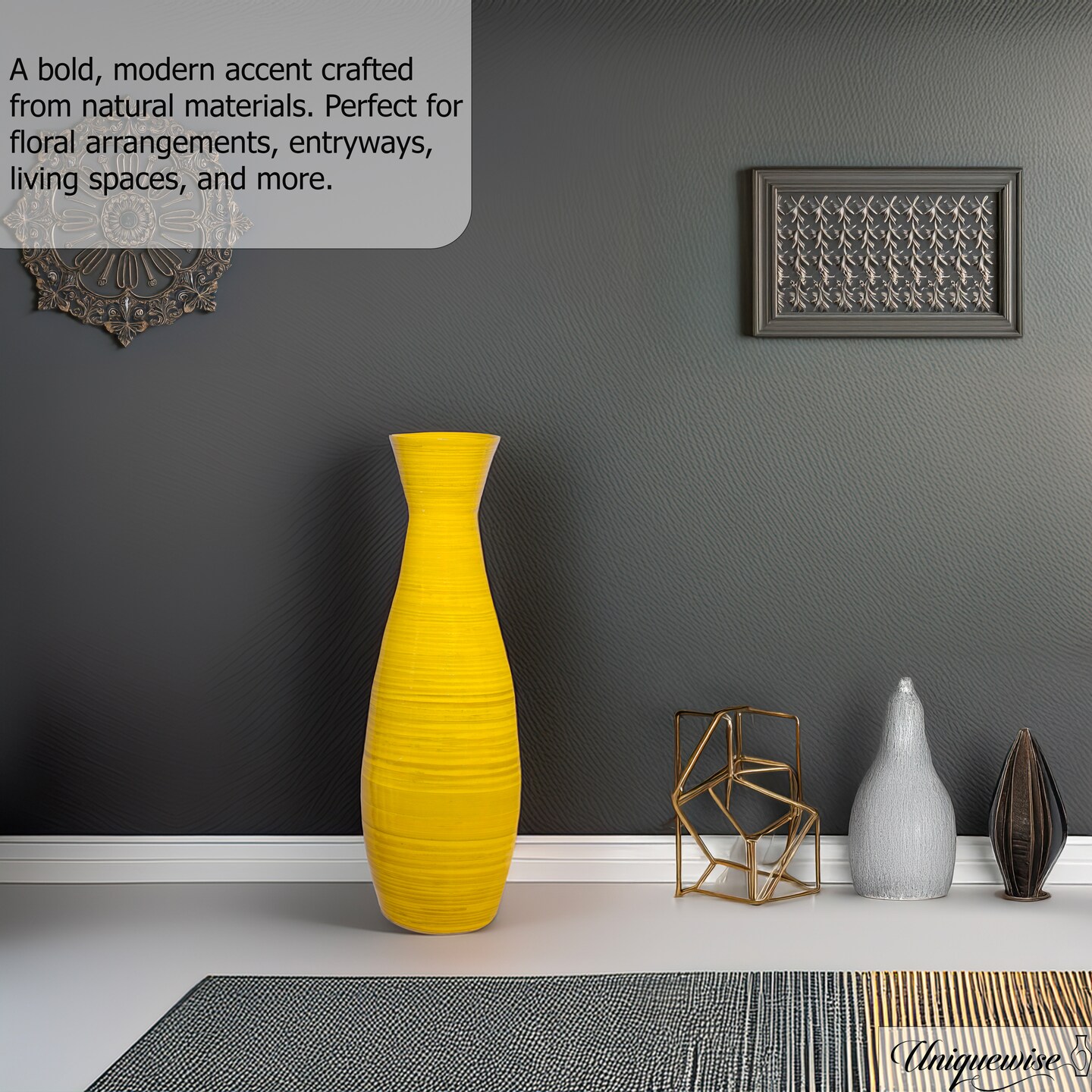 Uniquewise 24" Tapered Cylindrical Tall Bamboo Floor Vase with Flared Trumpet Top Decorative Accent for Dried Flowers Pampas Grass and Branch Arrangements Stylish Home and Office Decor Piece