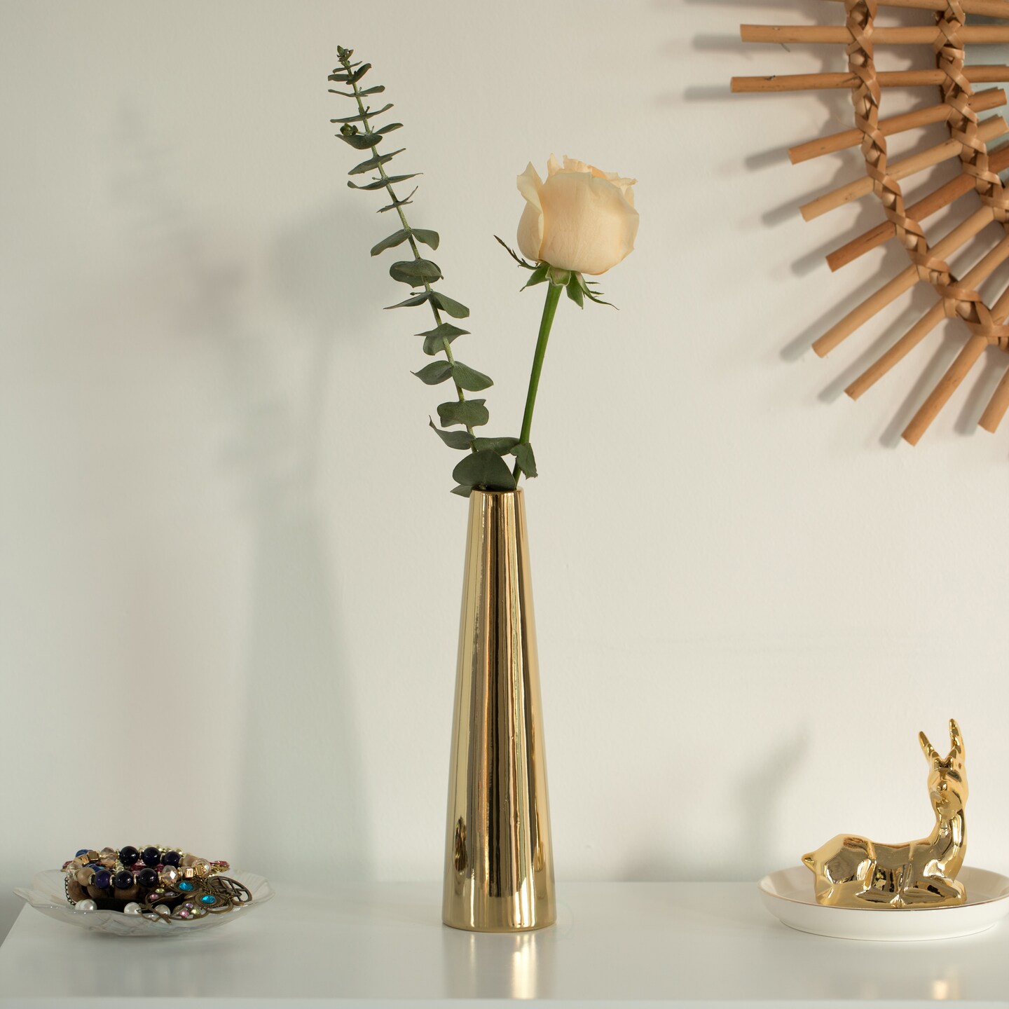 Uniquewise 8-Inch Slim Cone Ceramic Vase – Modern Decorative Centerpiece, Minimalist Flower Holder - Elegant Accent for Living Room, Office, Bedroom, Entryway, or Bathroom Decor