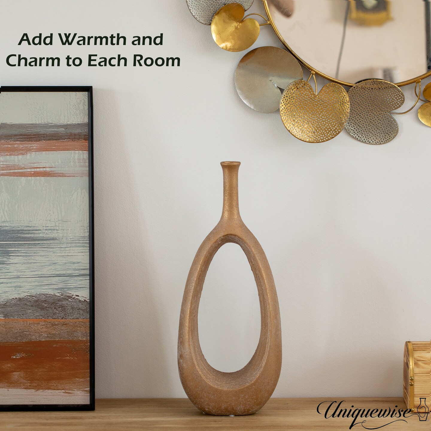 Uniquewise Fiberglass Floor Vases Modern Bohemian Ornamental Oval Design with Open Center for Entryway Living Room Bedroom Office Minimalist Home Decor Accent and Artistic Display Piece