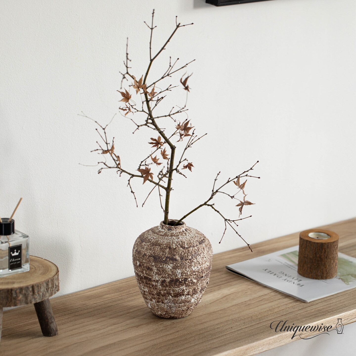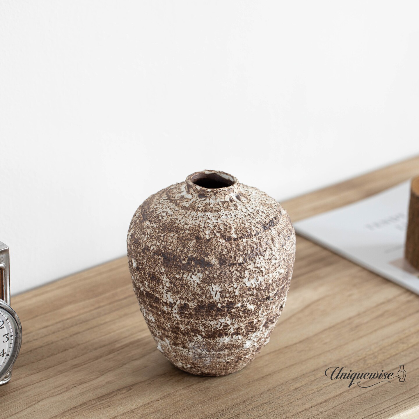 Uniquewise Textured Vintage Inspired Ceramic Vase Perfect for Displaying Faux Flowers Branches & Pampas Grass for Farmhouse Decor Living Room Bedroom Kitchen Office Dining Table Centerpiece, Brown