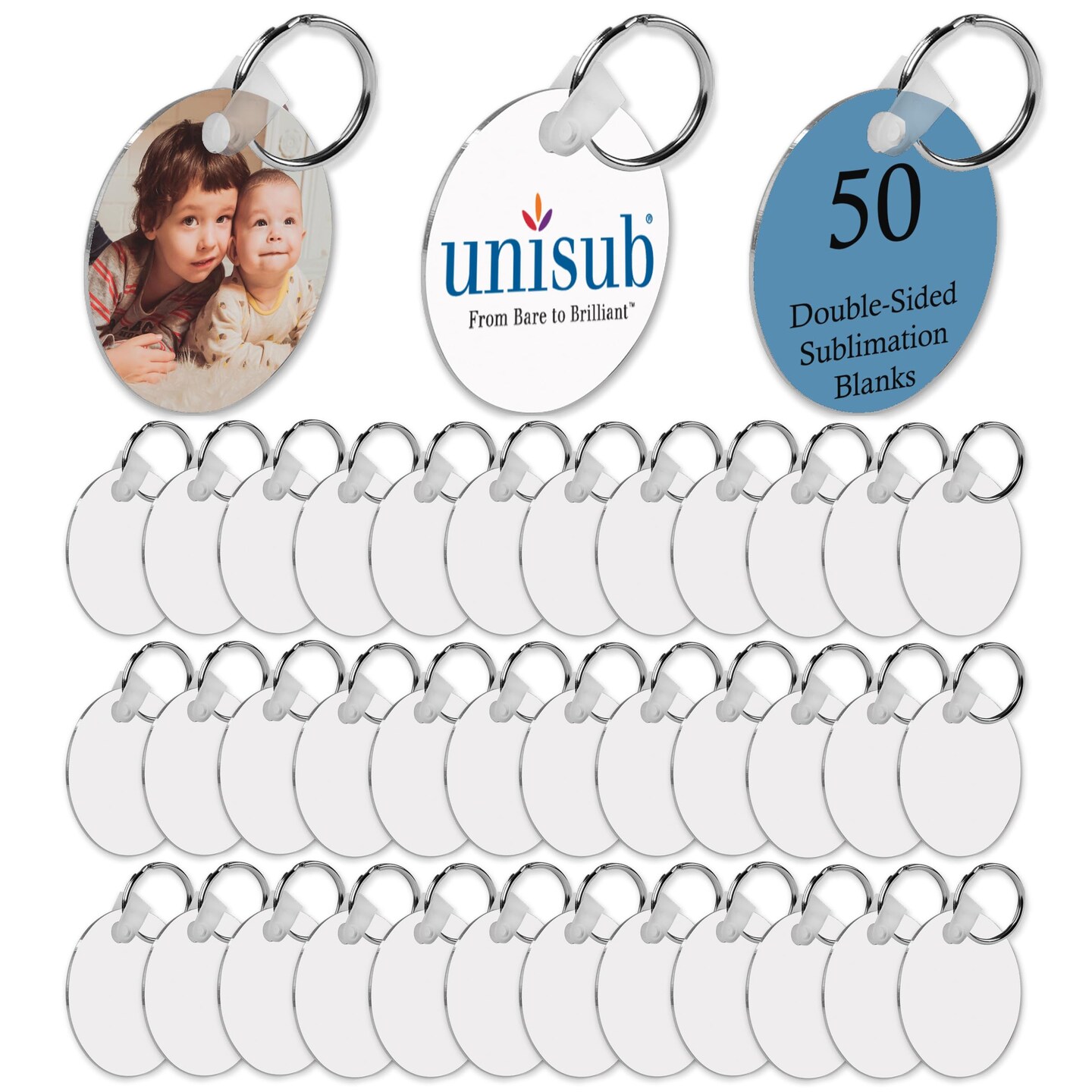 Unisub White Aluminum Round Bulk Sublimation Keychain Blanks, 2-Sided Gloss Coated Circle, 2" Diameter x .045", Scratch Resistant, Includes Ring & Tab, Made in USA (Case of 50)