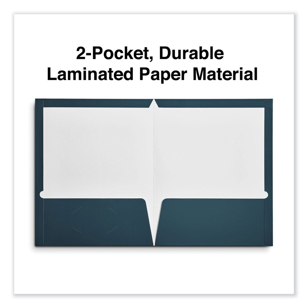 Universal 11 in. x 8-1/2 in. Cardboard Paper, Laminated Two-Pocket Folder - Navy (25/Pack)