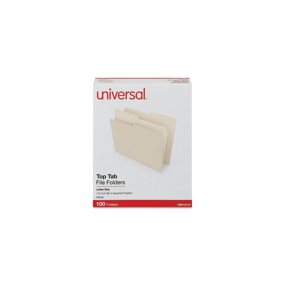 Universal 1/2-Cut Assorted Top Tab File Folders - Letter Size, Manila (100/Box)