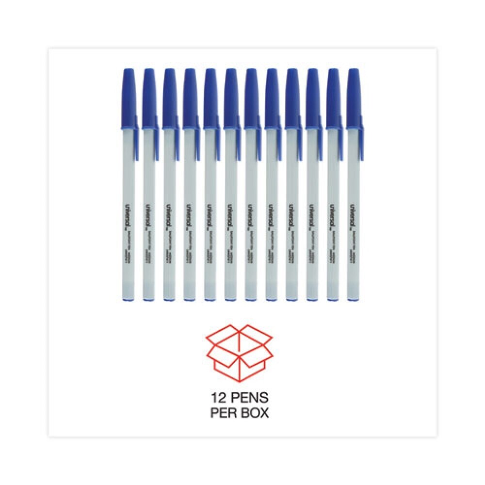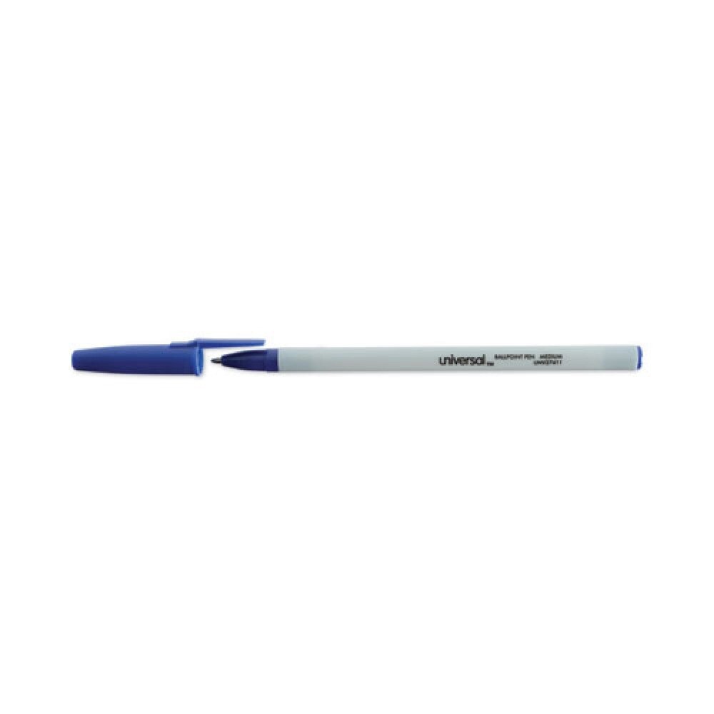 Universal Medium 1 mm Stick Ballpoint Pen - Blue Ink, Gray/Blue Barrel (1 Dozen)
