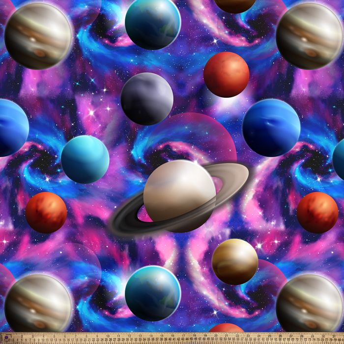 Universe of Planets Anti-Pill Fleece Fabric | By The Yard