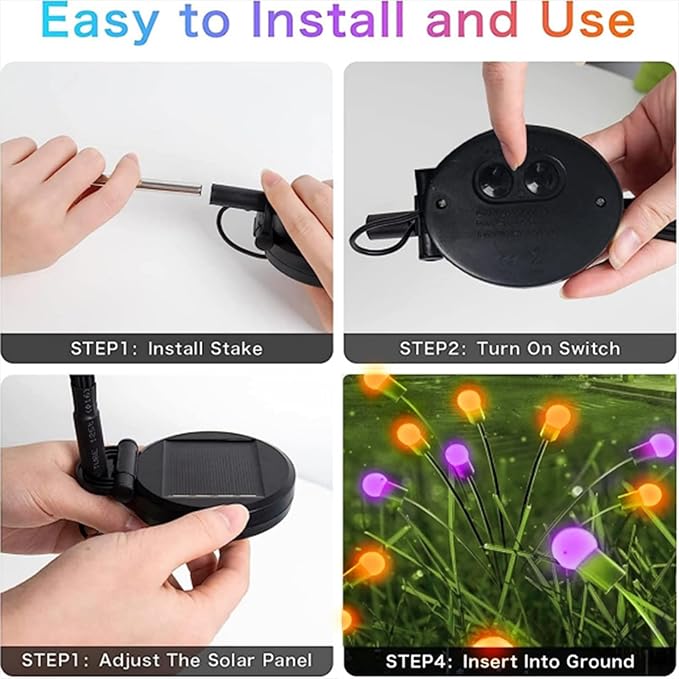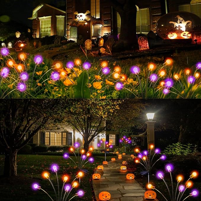 Upgrade Outdoor Halloween Decorations, 6-Pack Swaying Solar Lights (Orange and Purple), Sway by Wind, Long Lasting, 48 LED Waterproof Garden for Party Decor Yard Patio Pathway (JM - Firefly)
