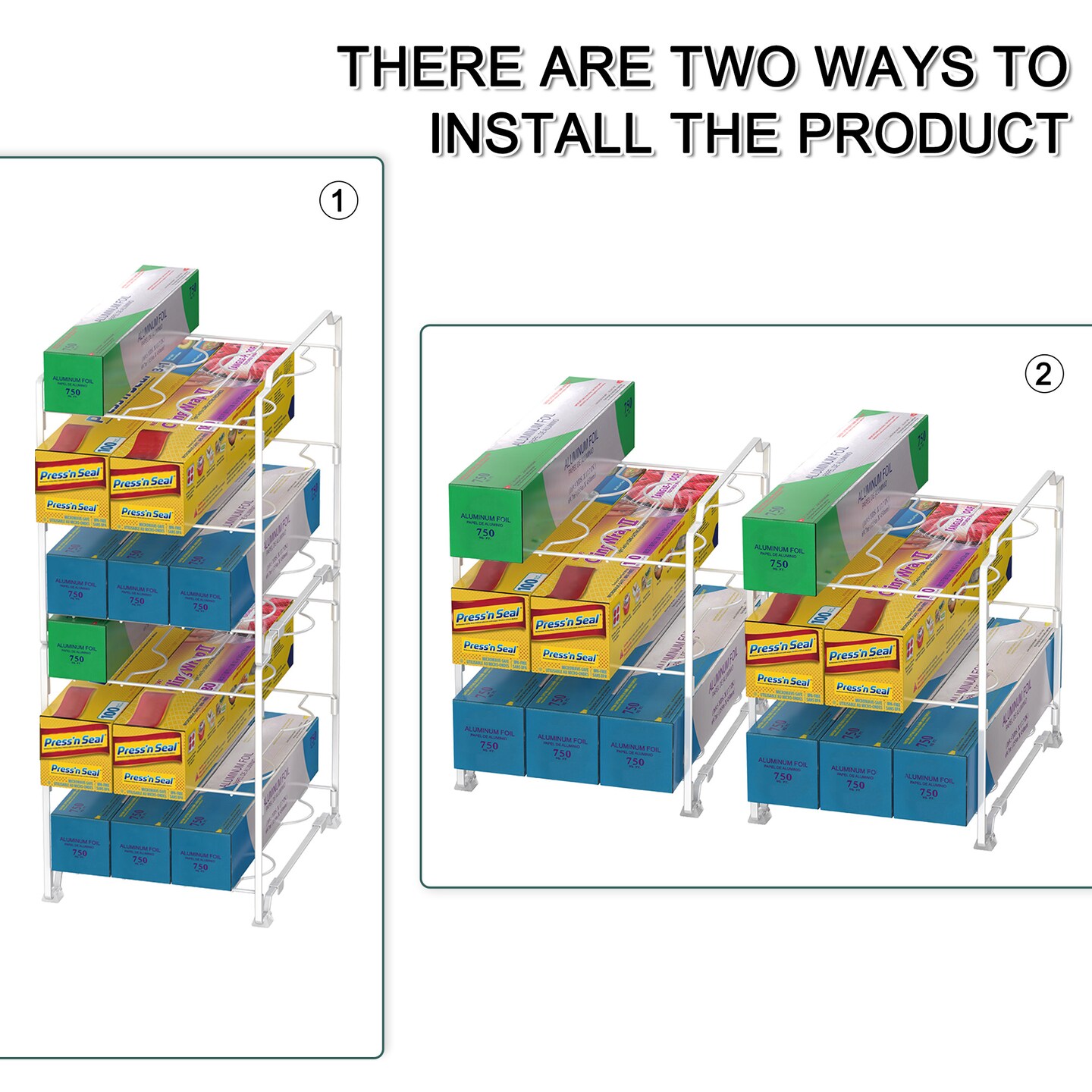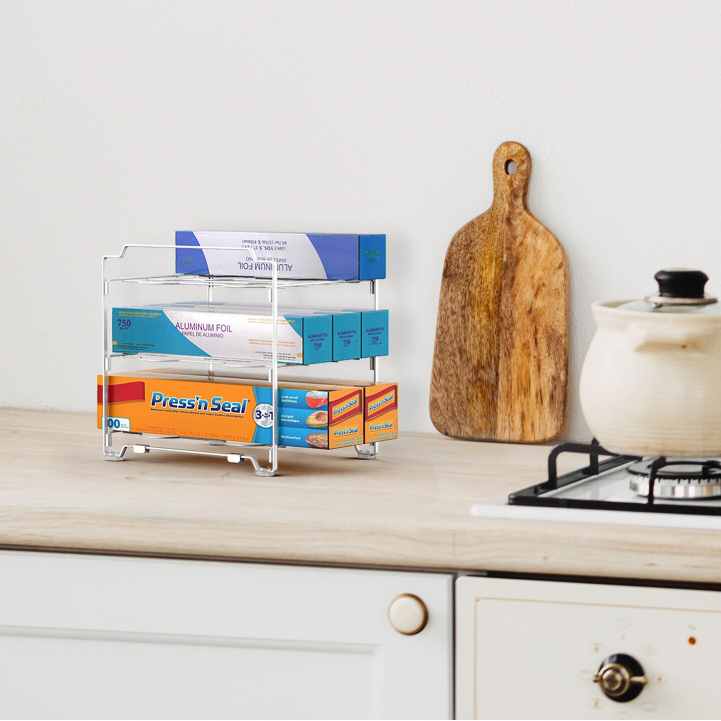 Upgraded Kitchen Wrap Organizer Rack - Non-Slip, Stackable Foil & Plastic Wrap Storage for Cabinets/Countertops - Space-Saving Design (7.7"L x 9.5"W x 9.4"H)