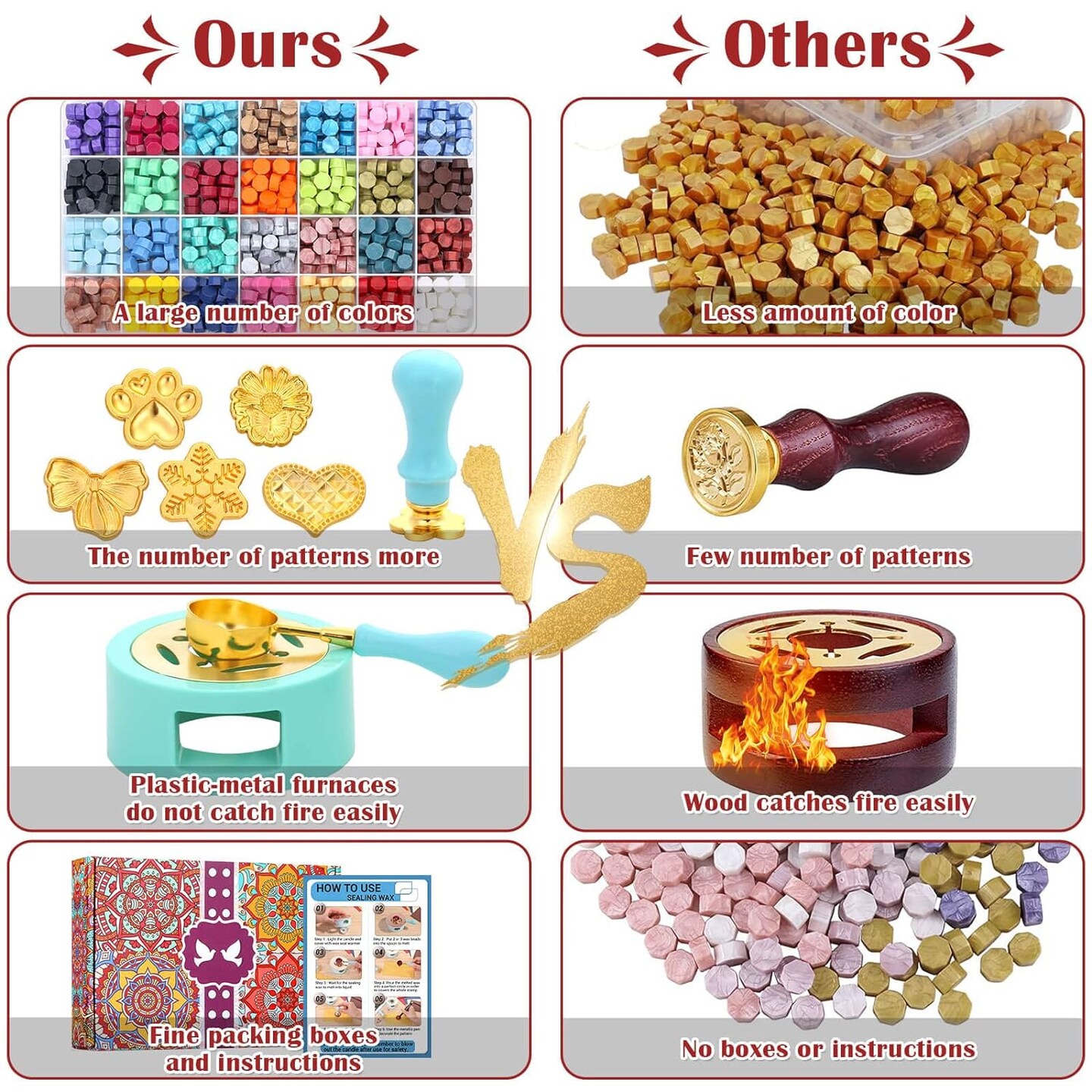 Upgraded Wax Seal Stamp Kit, Anezus 790pcs Sealing Wax Kit with Wax Seal Beads, Wax Stamp, Wax Warmer, Vintage Envelopes, and Gift Box for Letter Sealing, Invitation Cards, Craft Decoration