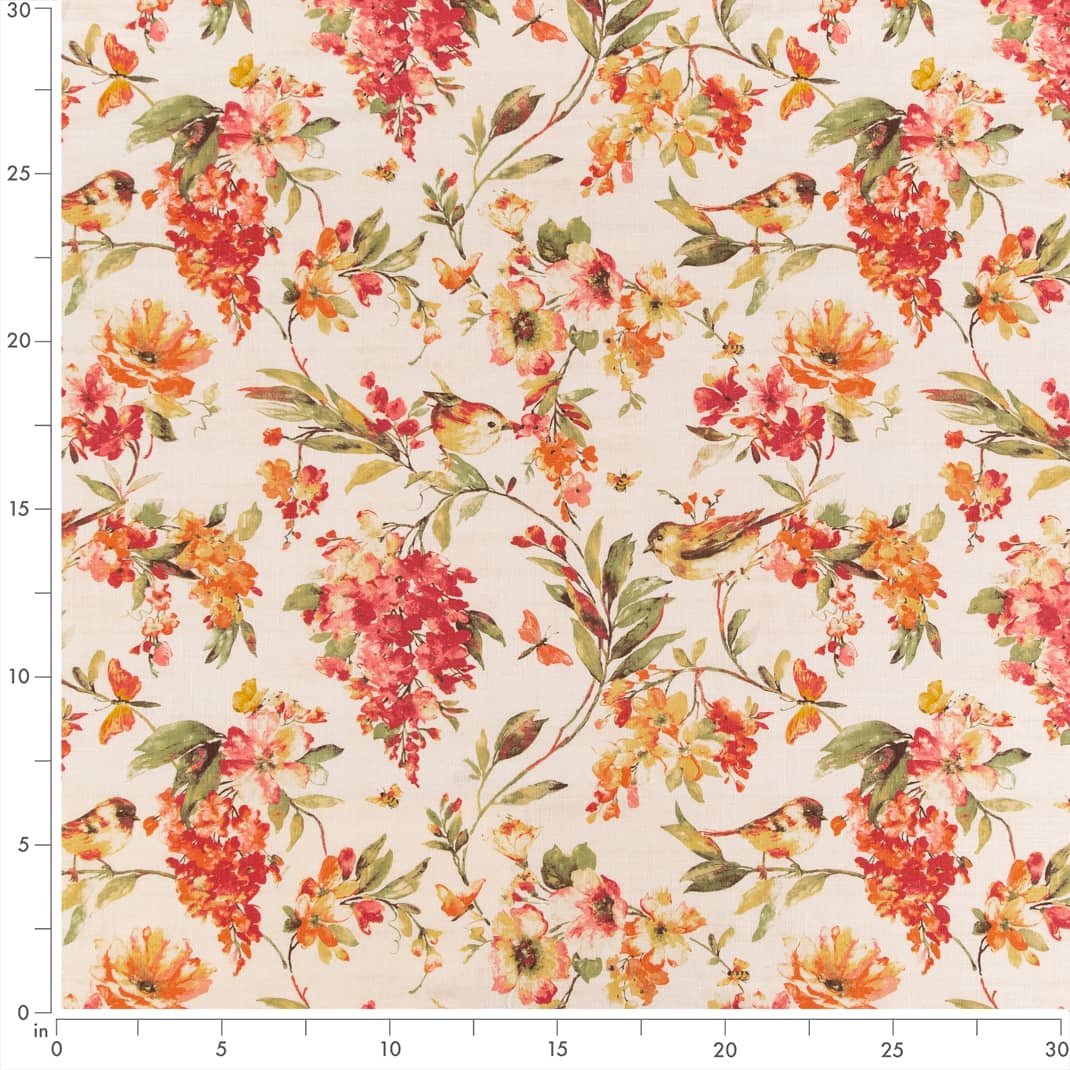 Upholstery Fabric - Orange & Rust Floral Upholstery Fabric 54 Inches"