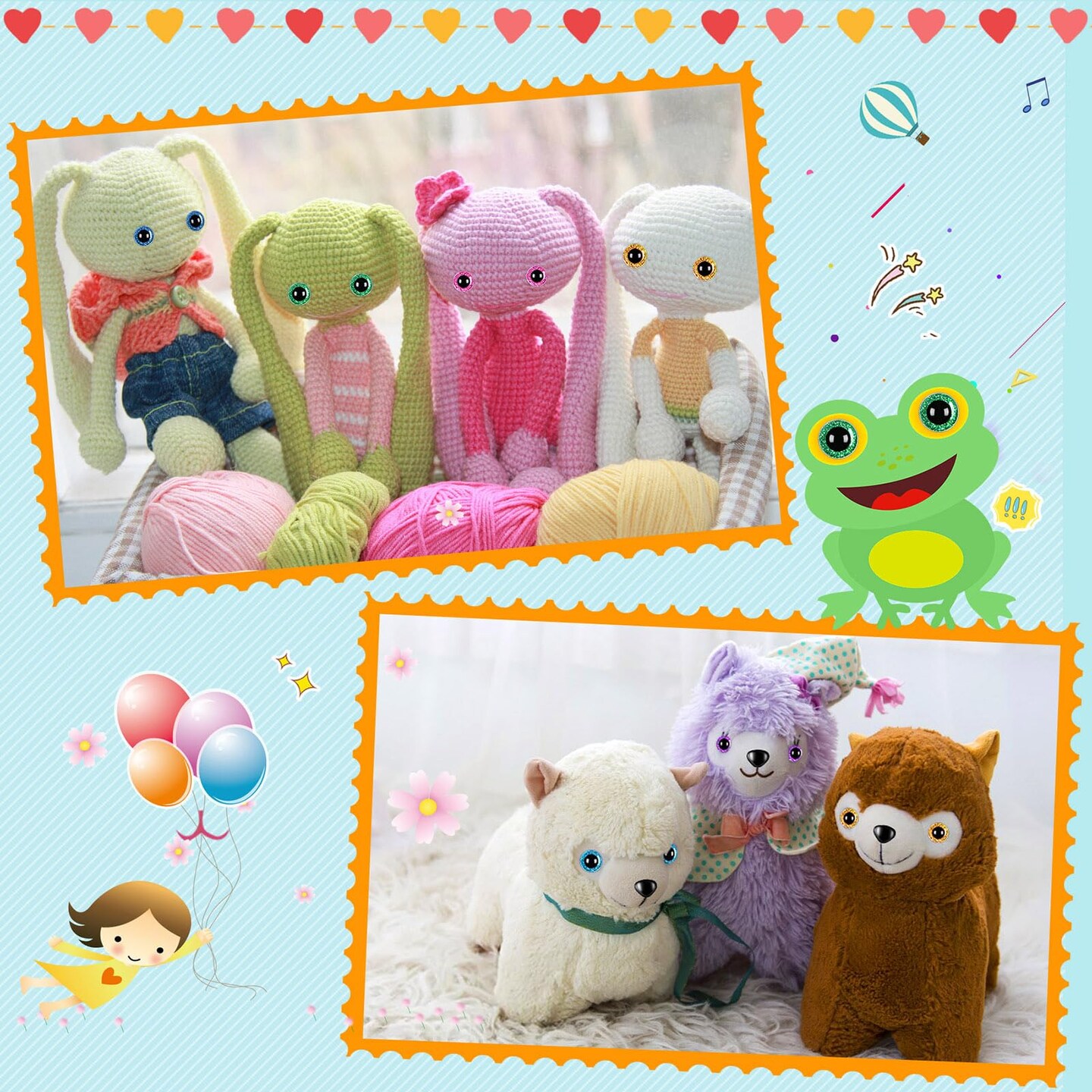 UPINS 180 Pieces 10-35 mm Large Safety Eyes with Washers for Amigurumi Stuffed Animal Plastic Craft Doll Crochet Eyes for DIY of Puppet, Bear, Toy Making Supplies (Assorted Colors)