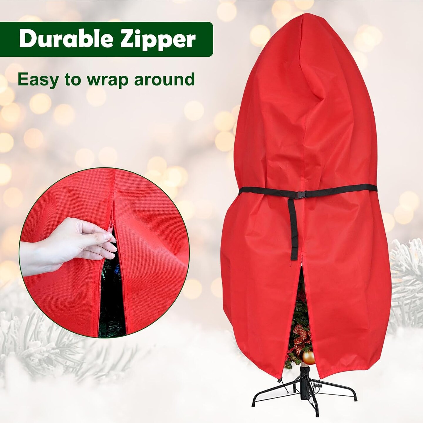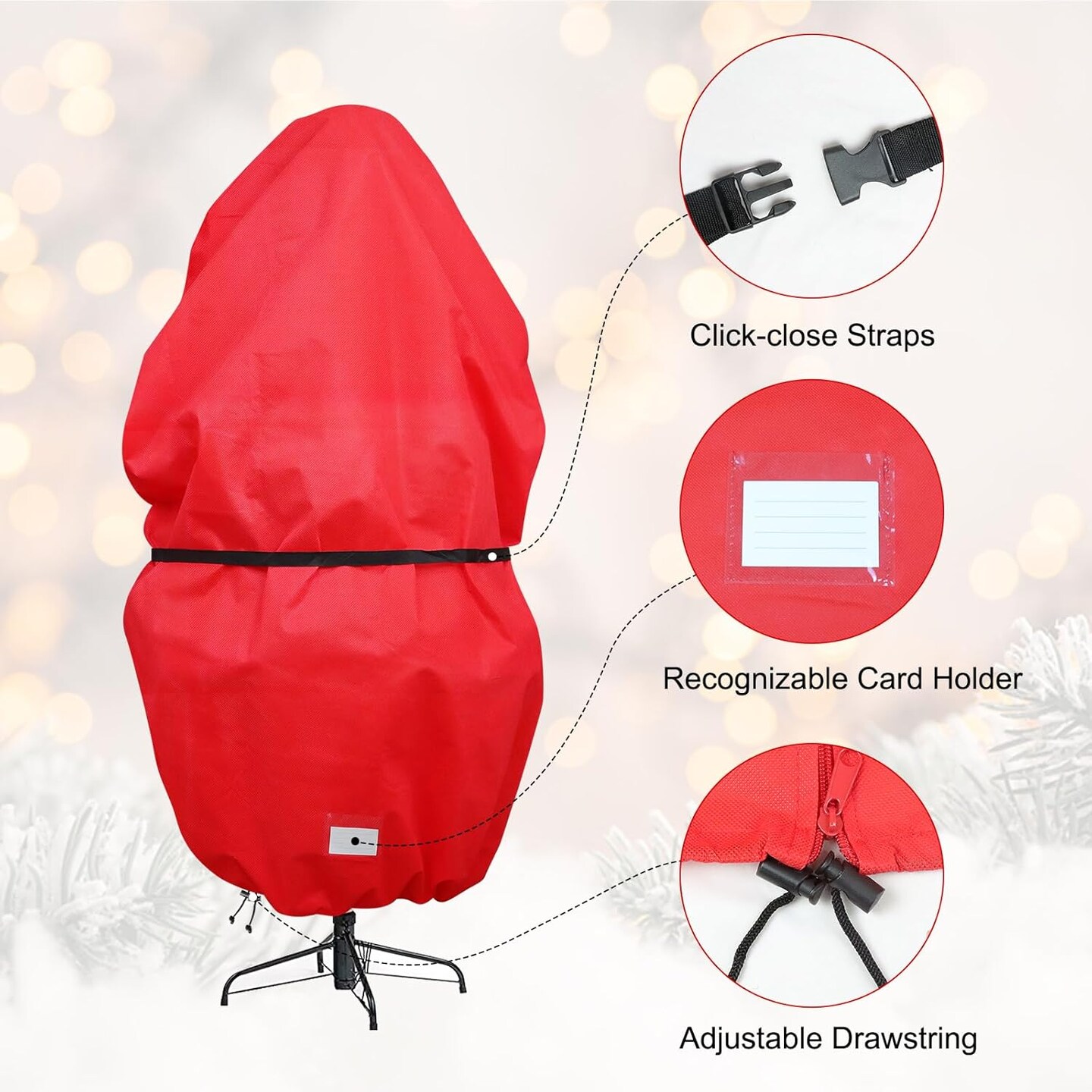 Upright Christmas Tree Storage Bag with Adjustable Straps, Xmas Tree Cover with Zipper & Drawstring for up to 7.5 Foot Artificial Tree Standing with Ornaments, Dustproof - Red