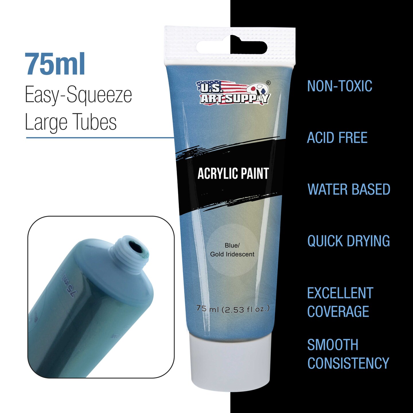 U.S. Art Supply 12-Color Iridescent Acrylic Paint Set Large 75ml Tubes - Luminescent, Chameleon, Color-Shifting Pearl Colors, Crafting Paints - Iridescent Paint Acrylics for Canvas, Wood, Rock, Paper