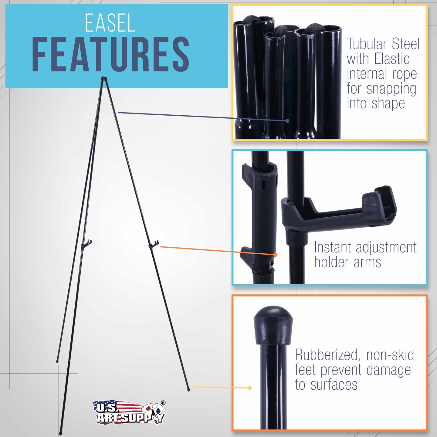 U.S. Art Supply 63" High Metal Folding Display Easel - Adjustable Height, Instantly Collapses, Holds 5 lbs - Portable Art Easel Stand - For Sign, Poster, Canvas, Painting, Picture Display
