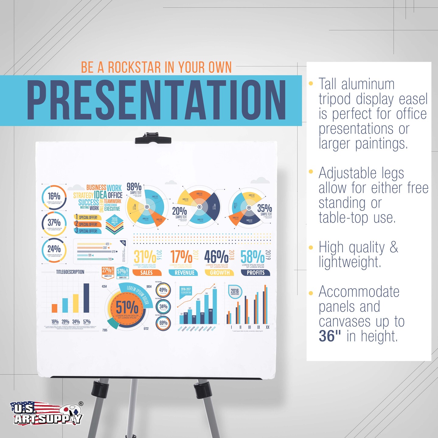 U.S. Art Supply 66" Silver Metal Tripod Easel Display - Adjustable 18"- 5.5', Holds 36" Canvas - Floor/Tabletop Easel Stand, For Sign Display, Painting, Poster Board, Canvas - Portable Bag