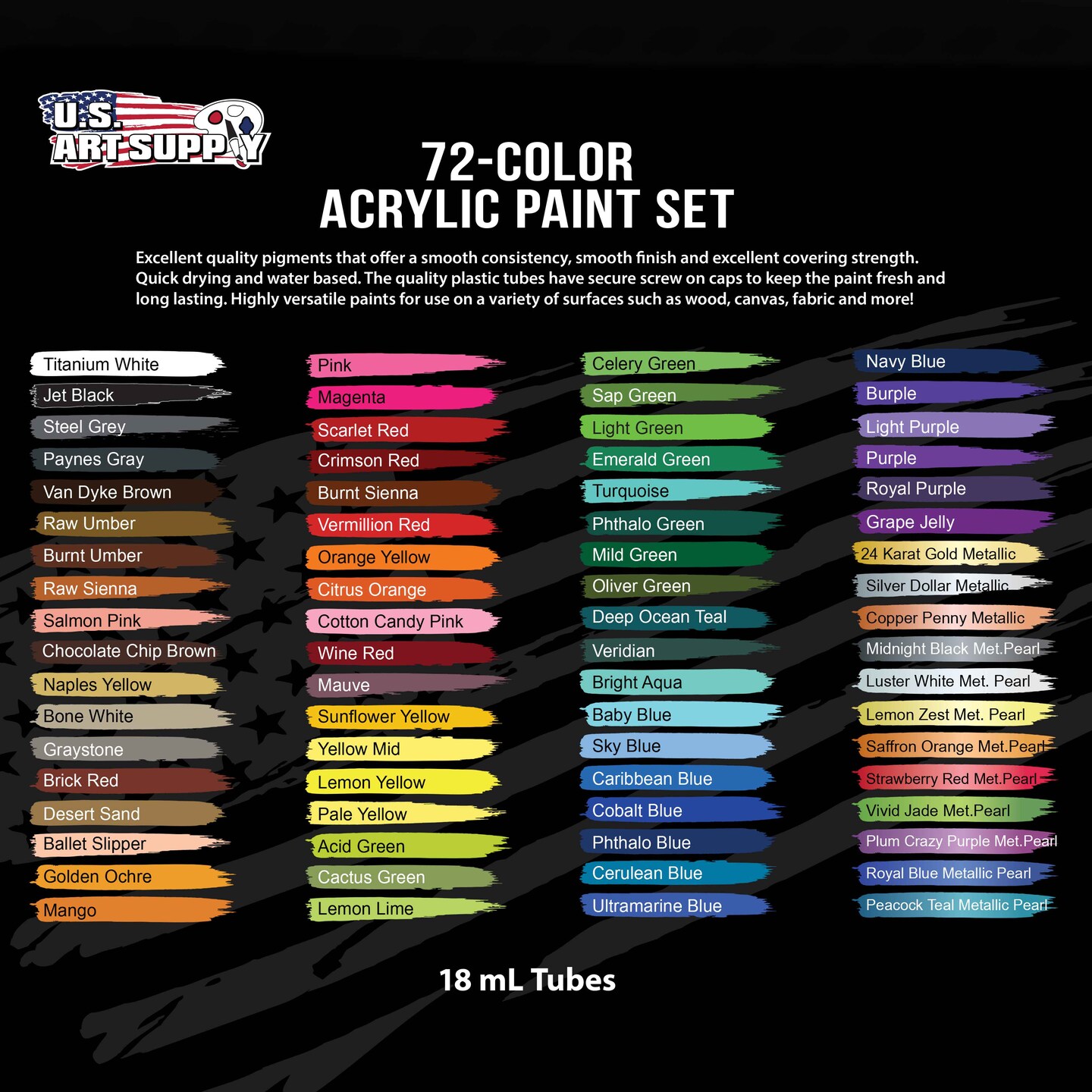 U.S. Art Supply 72 Color Professional Acrylic Paint Set in 12ml Tubes - Art Painting Supplies for Adults, Artists, Students, Beginners - Canvas Portrait Paintings