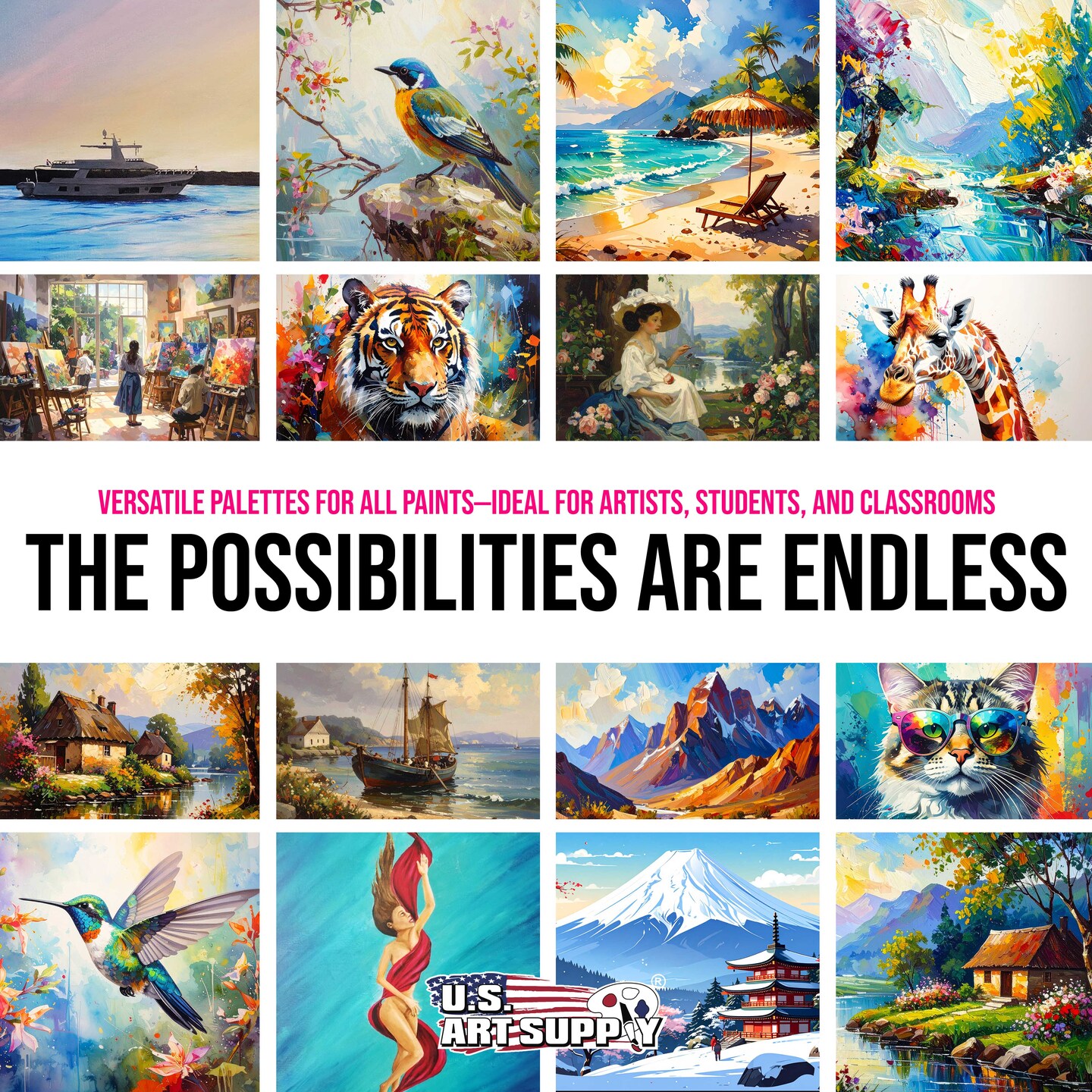 U.S. Art Supply 9" x 11.8" Clear Oval-Shaped Acrylic Painting Palette (Pack of 2) - Transparent Plastic Artist Paint Color Mixing Trays - Non-Stick