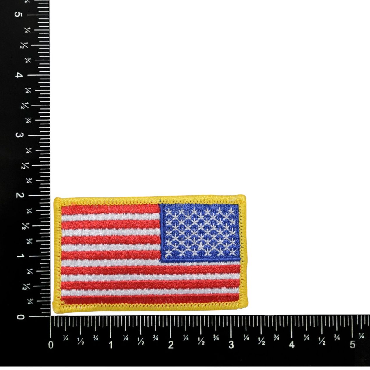 US Flag, Yellow Border, Rear Facing, American, Embroidered, Iron on Patch