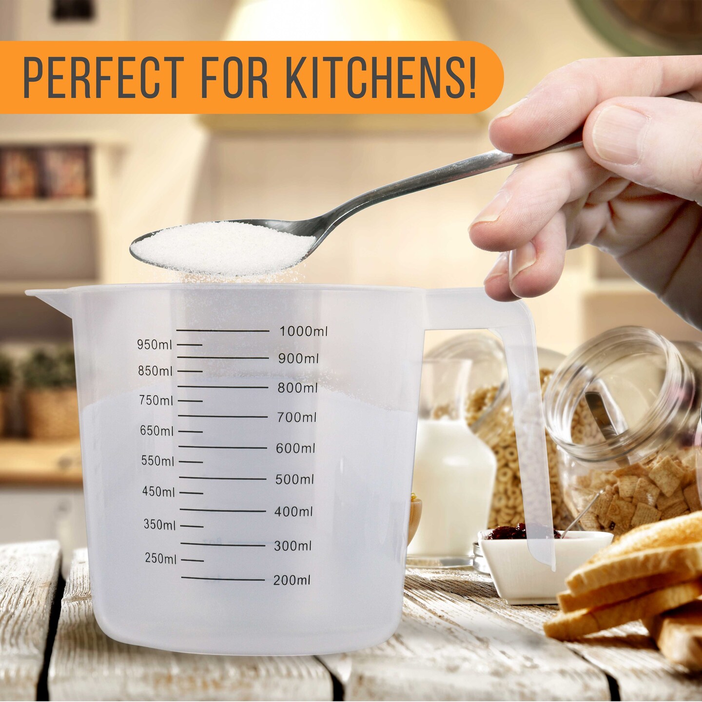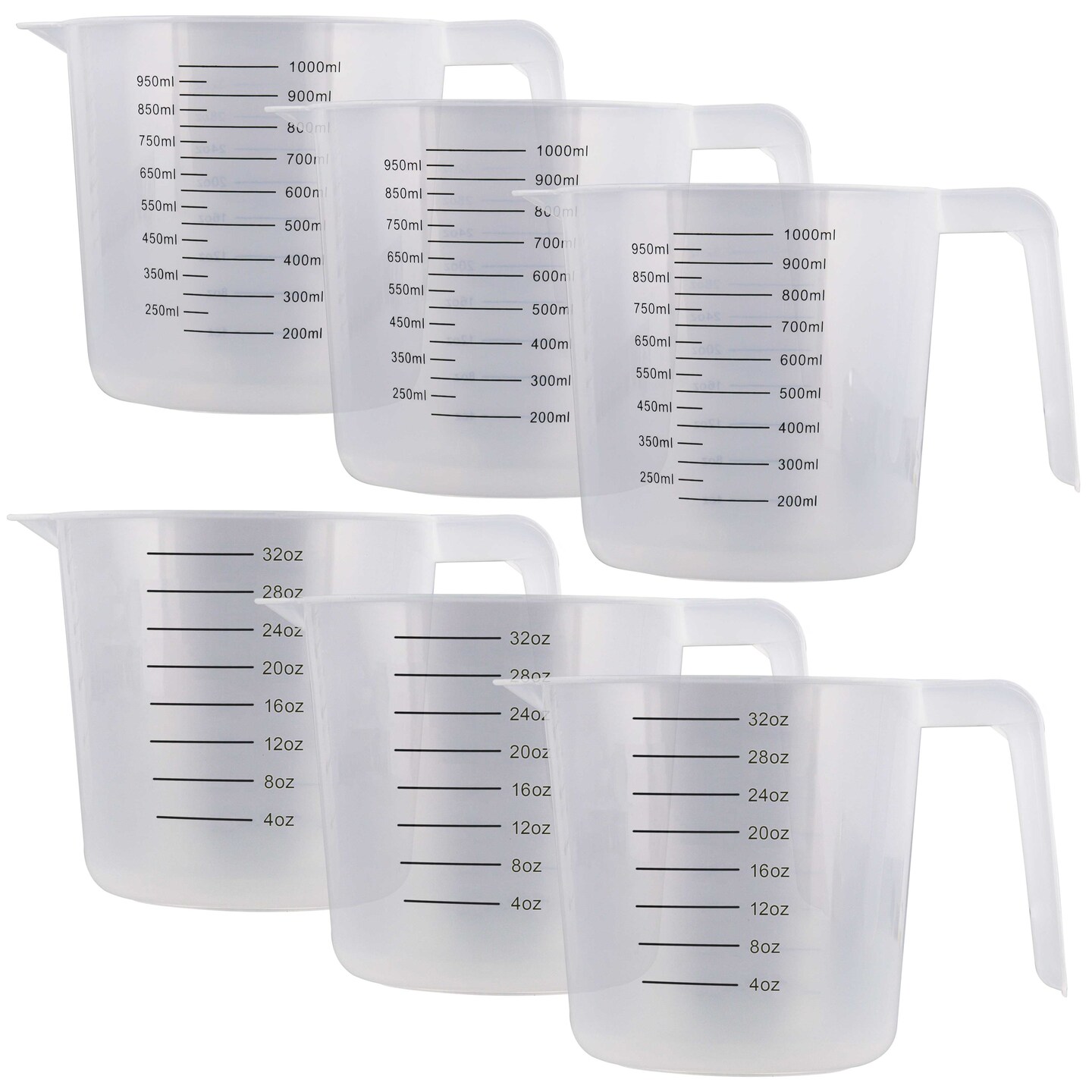 U.S. Kitchen Supply 6 Pack Plastic Measuring Cups with Handles - 32 oz Liquid Measuring Cup, Clear Microwave Safe Kitchen Cups - Measure in mL or Ounces, Measurement Cup for Cooking