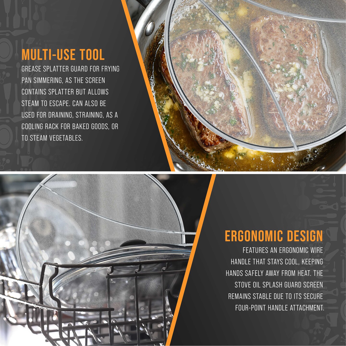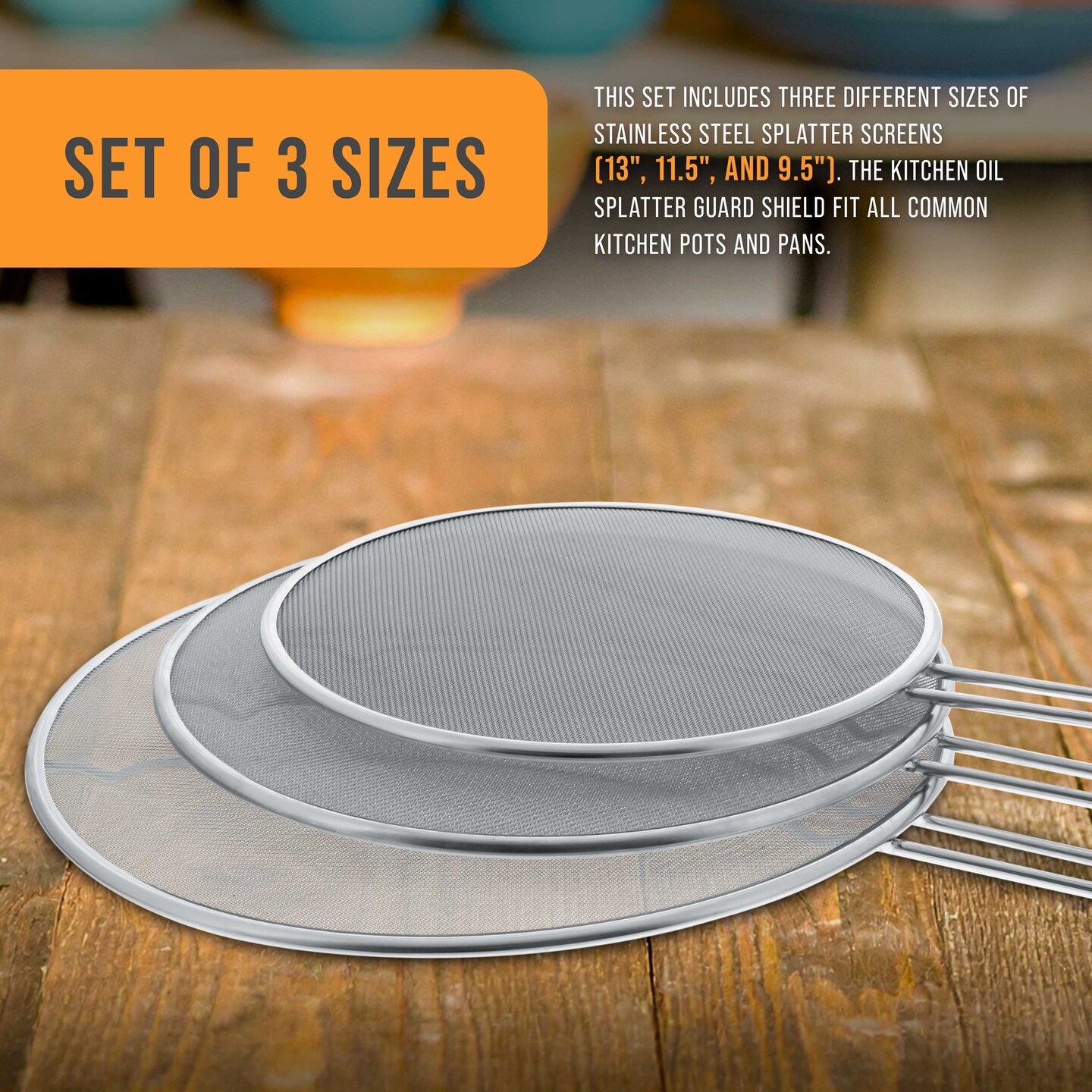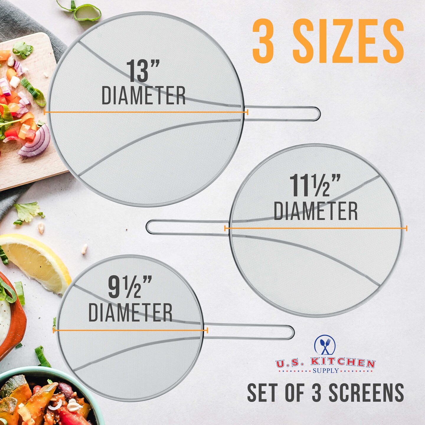 U.S. Kitchen Supply Set of 3 Stainless Steel Splatter Screen - 13", 11.5" & 9.5" Sizes - Fine Mesh Splatter Screen with Resting Feet Set, Grease Guard for Kitchen Pots and Pans