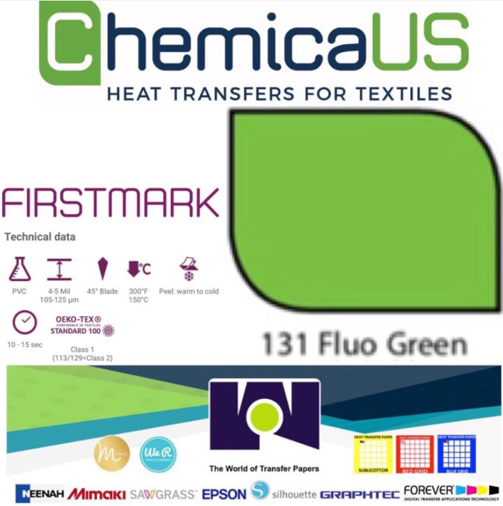 USA 15" x 22 Yds Chemica FirstMark Heat Transfer Vinyl FLUO GREEN CH-131 HTV