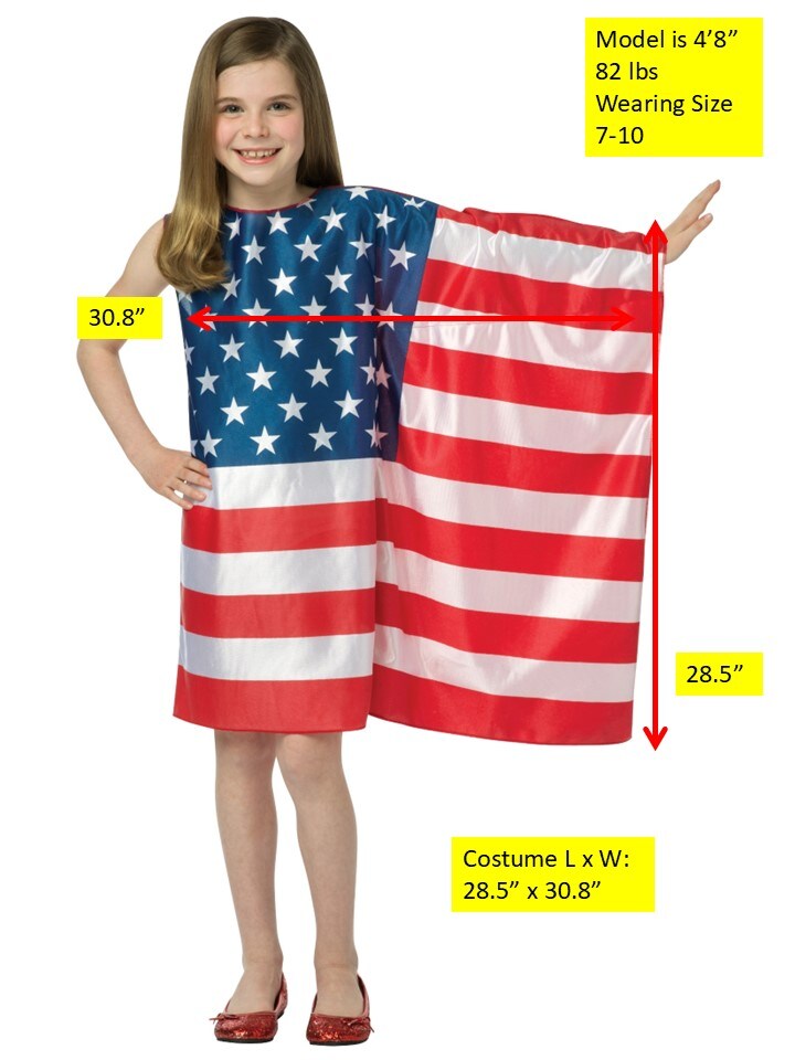 USA Flag Dress Halloween Costume, Child Sizes 4-6 & 7-10