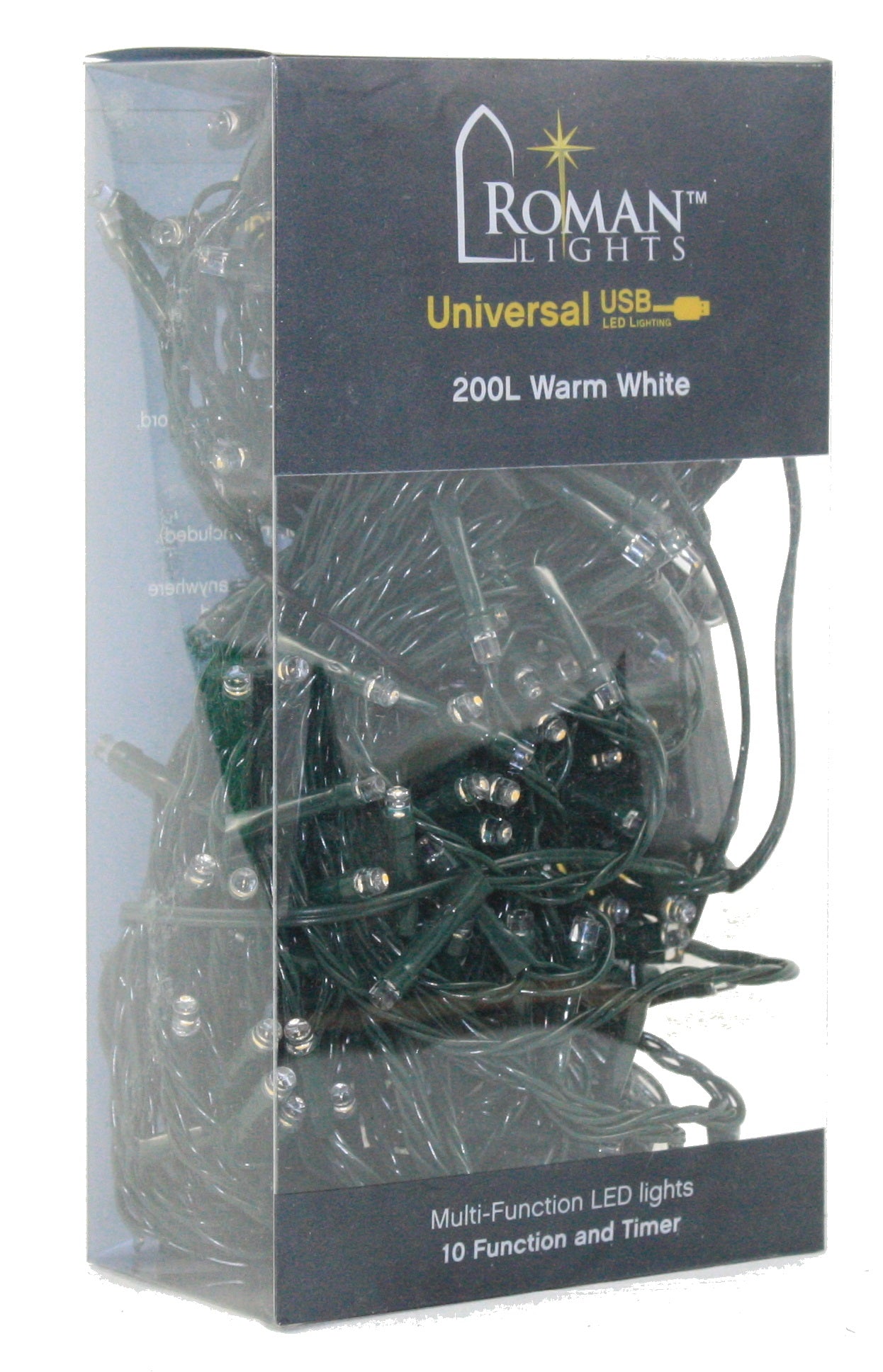 USB powered 200 LED (52 foot) Green Wire Multifunction Lights with Timer - Warm White