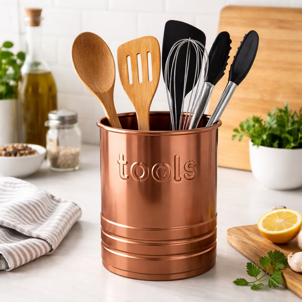 Utensils Holder "TOOLS" Embossed 2 Qt | Copper Finish