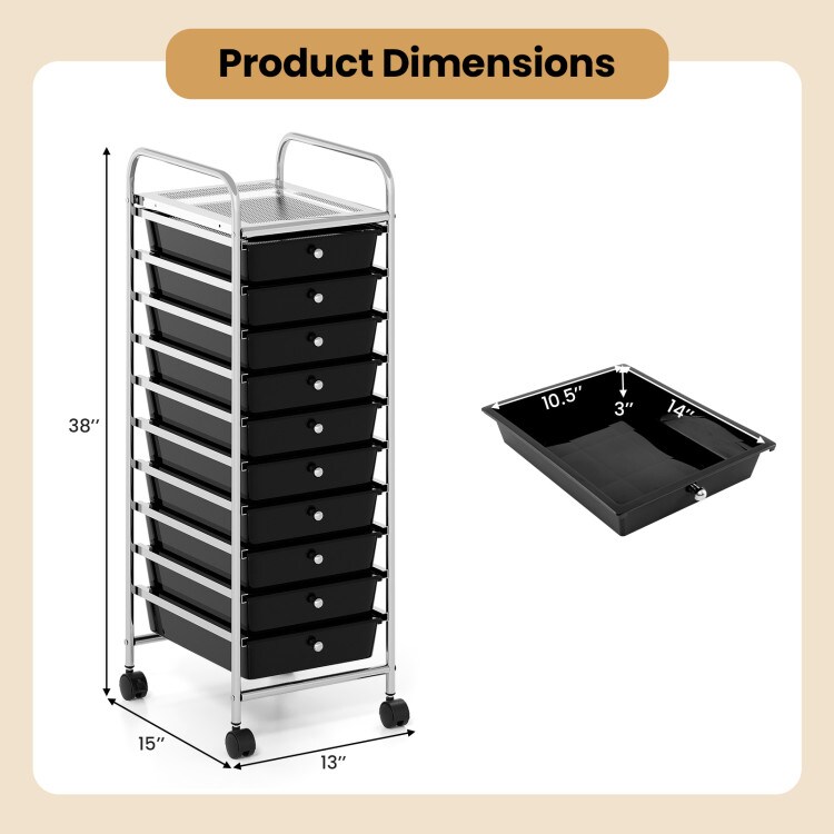 Utility Cart with 10 Drawers Sturdy Metal Frame Rolling Organizer