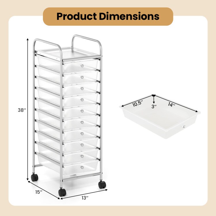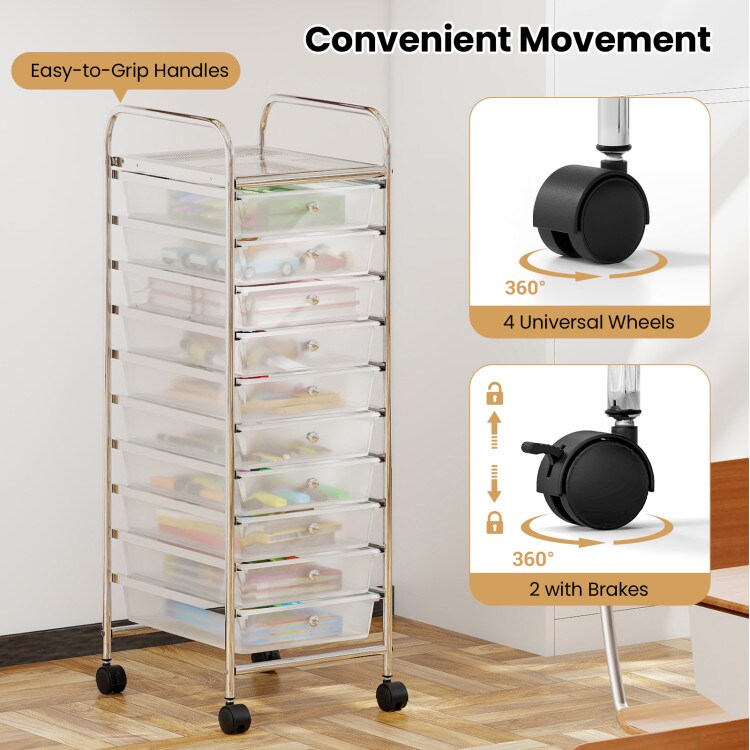 Utility Cart with 10 Drawers Sturdy Metal Frame Rolling Organizer