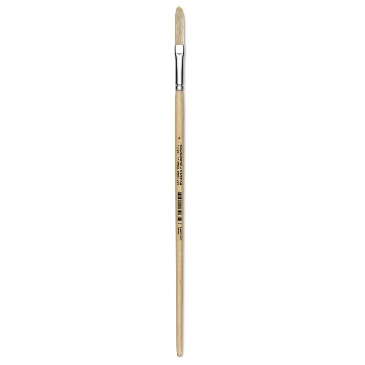 Utrecht Rhenish Pure Hog Bristle Brush - Extra Long Filbert, Size 4, Long Handle