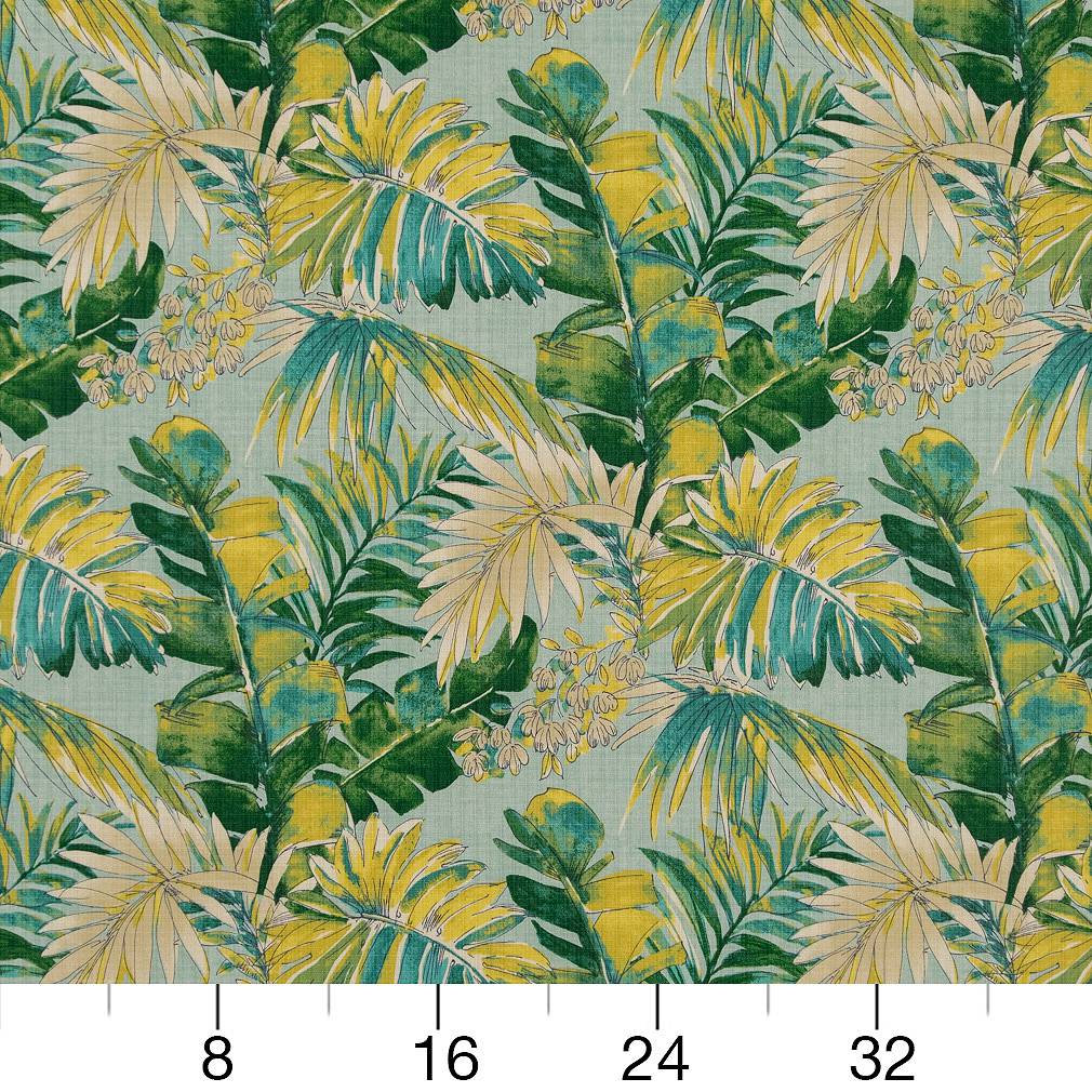 Valencia - Aqua & Teal,Green Leaves,Tropical & Botanical Upholstery Fabric 54 Inches"