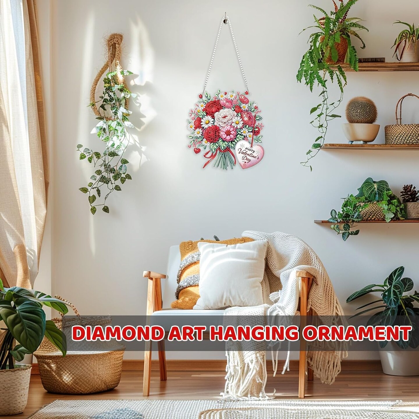 Valentine's Day Hanging Diamond Art Kits for Adult, Flowers Diamond Painting Hanging Kits Ornaments, DIY Special Shaped Rhinestone Window Pendants kit for Home Garden Wall Decor Gift