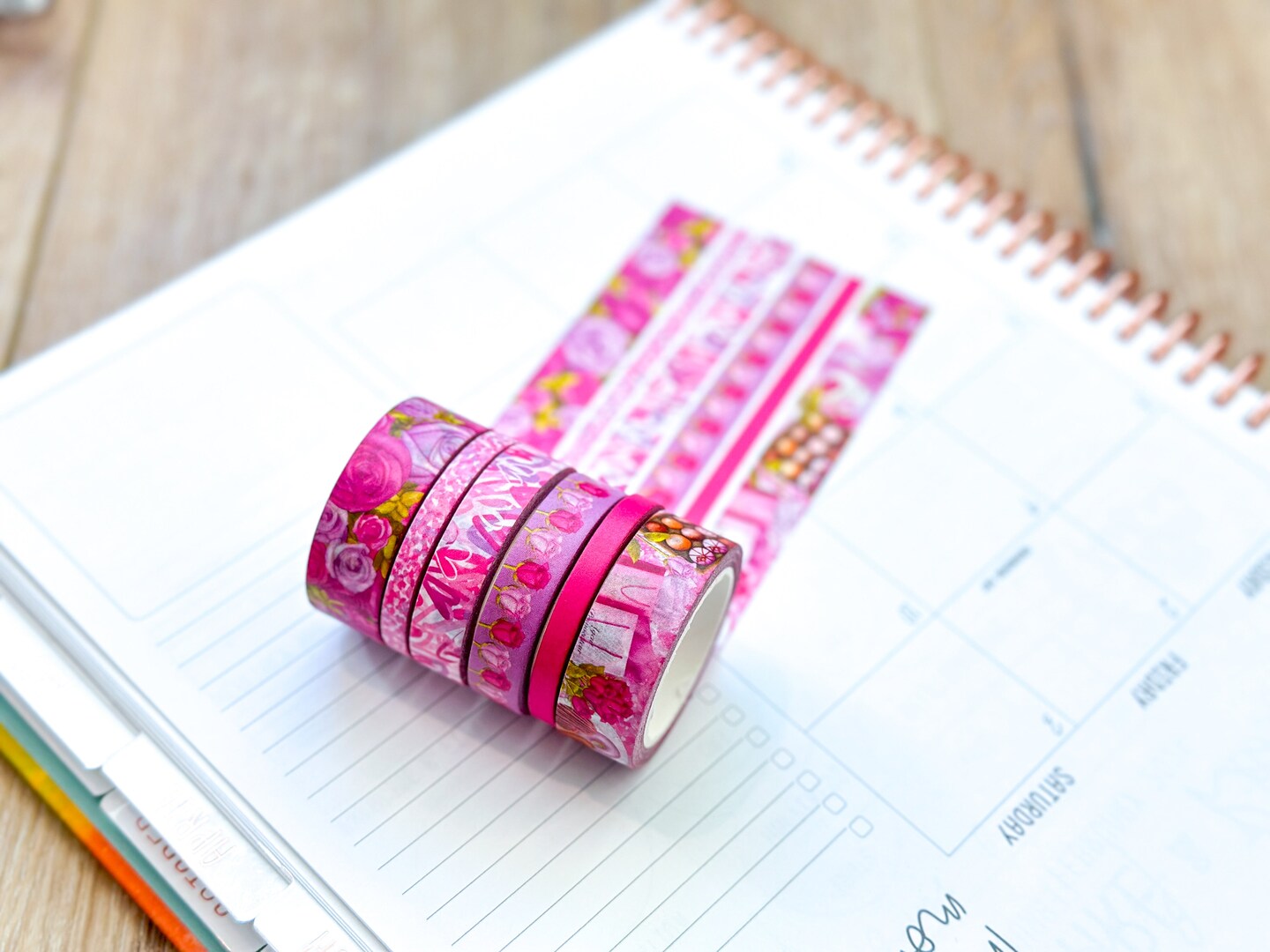 Valentine's Day Pink Romantic Date Night Anniversary Roses Washi Tape Set February 2024 - W102