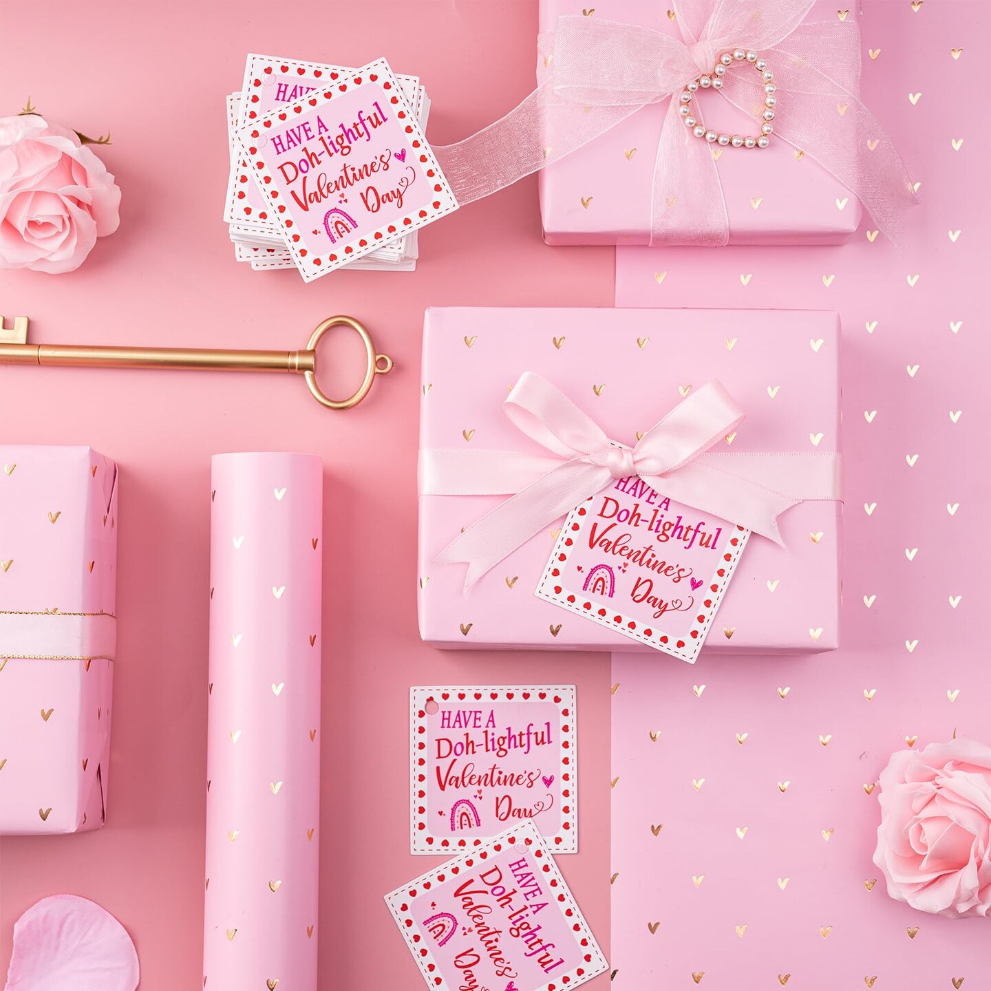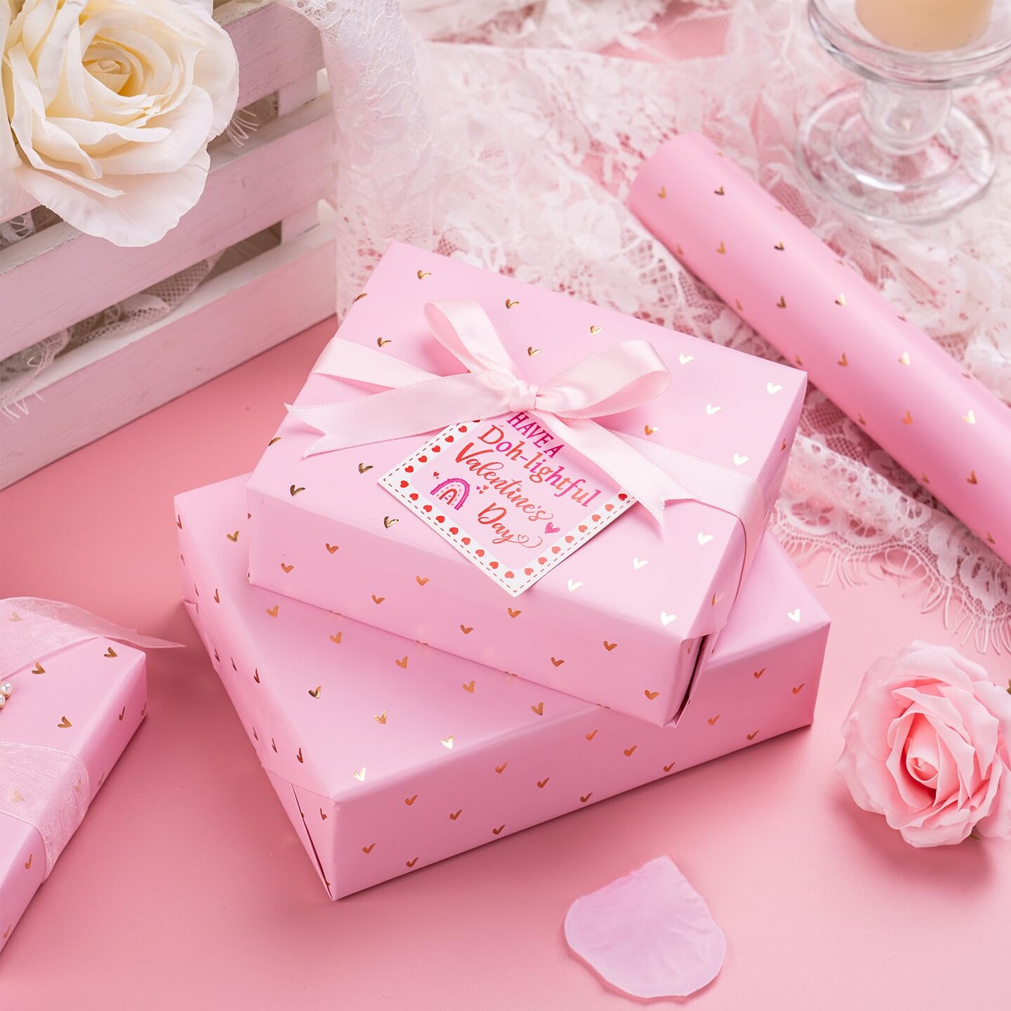 Valentine's Day Wrapping Paper - Mini Roll - 17 Inch X 33 Feet - Sweet Gold Foil Pink Love Heart Design for Valentine's Day, Wedding, Anniversary, Birthday, Baby Shower