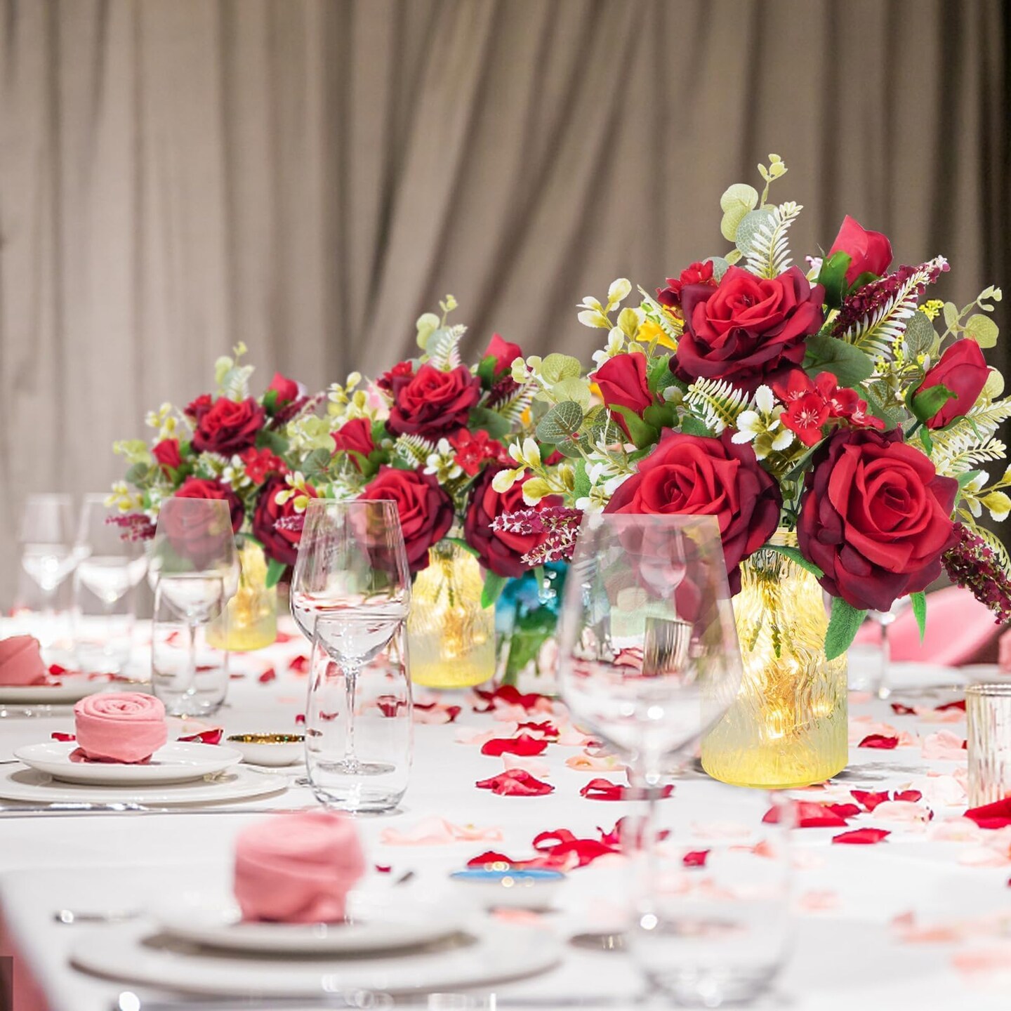 Valentine Centerpieces for Tables Valentines Day Flowers in Vase Red Artificial Roses with Light Valentine's Day Decorations for Wedding Party Kitchen Dining Room Home Decor