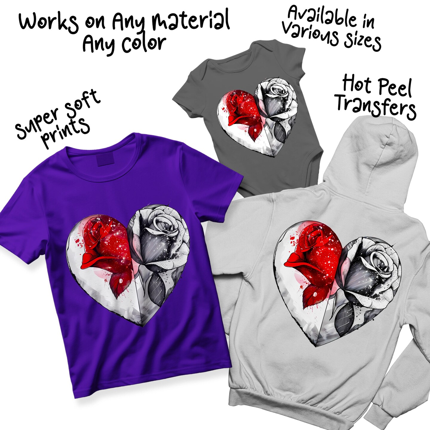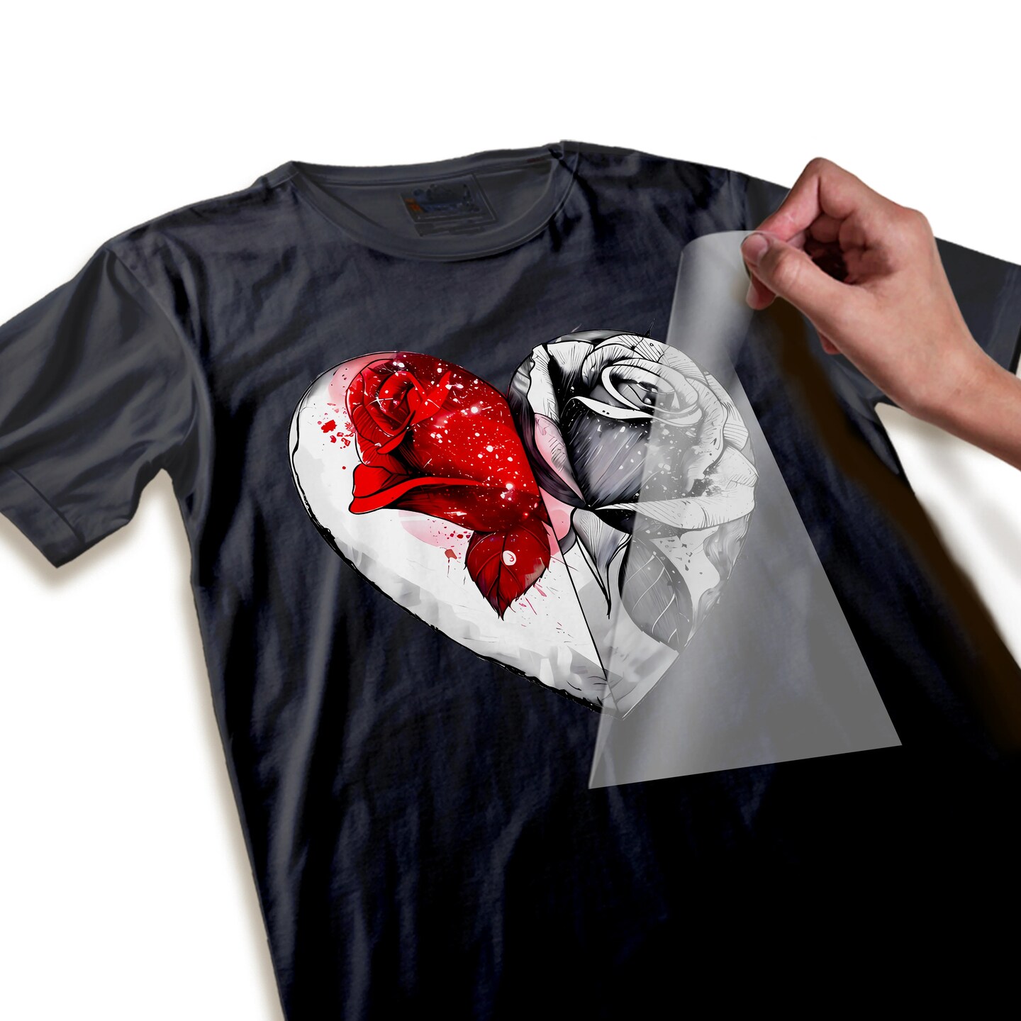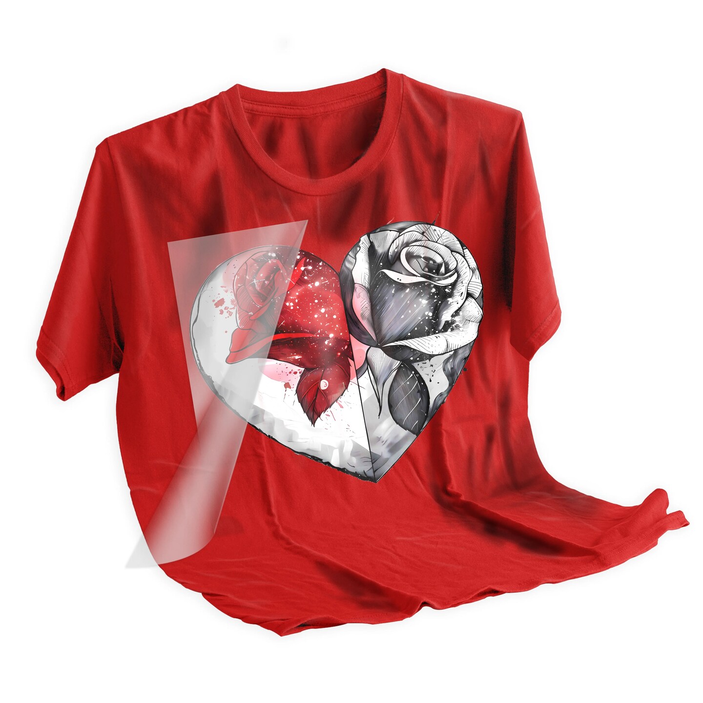Valentine DTF Transfer Ready To Press - Split Heart Rose Sketch