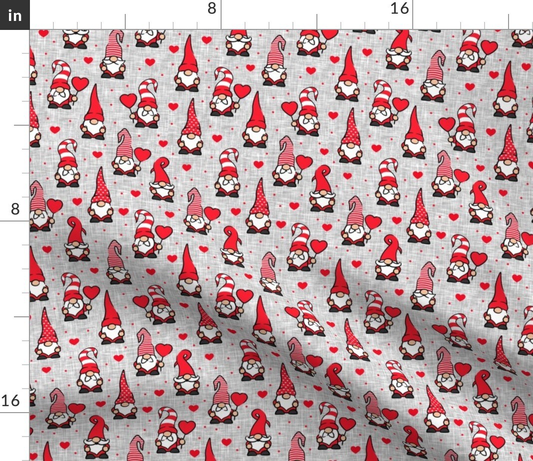 Valentine Gnomes Red Grey Cute Holiday Valentines Day Gnome Custom Printed Fabric by Spoonflower Various Fabrics by the Yard or Fat Quarter