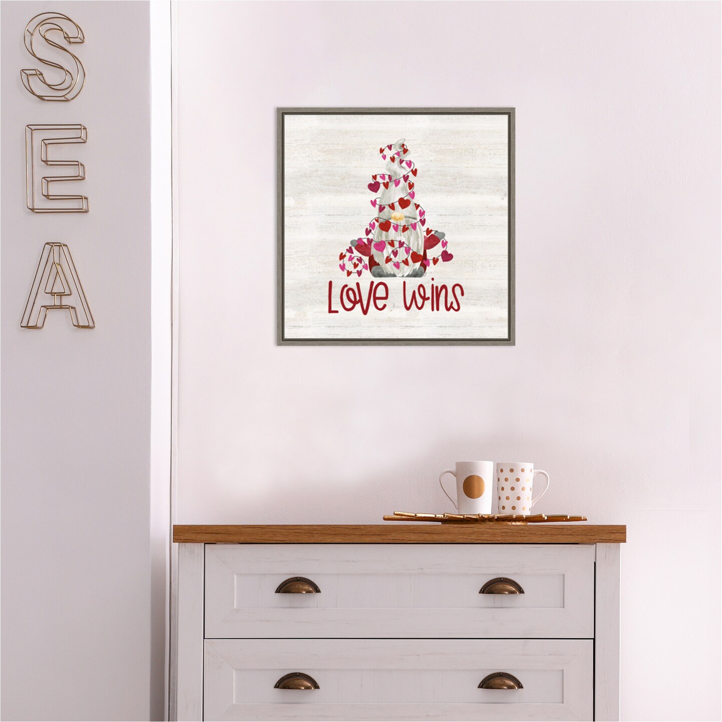 Valentine Gnomes VII Love Wins by Tara Reed 16-in. W x 16-in. H. Canvas Wall Art Print Framed in Grey