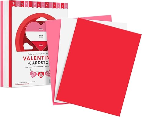 Valentine’s Colored Card Stock Paper, Valentines Day Red, Pink & White 8.5 x 11" Cardstock for Valentine Greetings, Gift Tags, Art & Crafts, Invitations | 25 Red, 25 Pink, 50 White (100 Sheets Total)