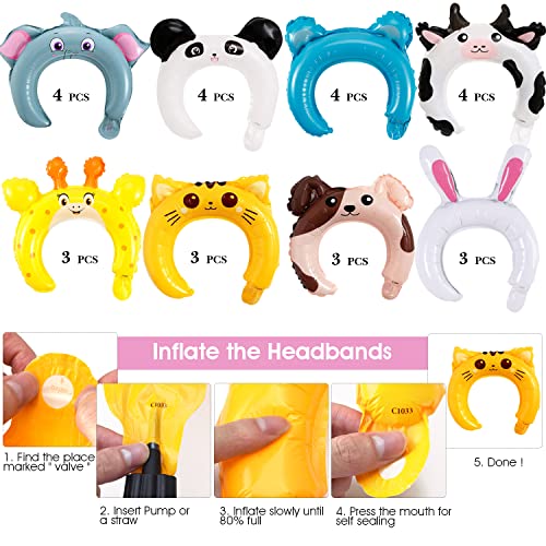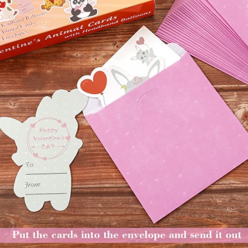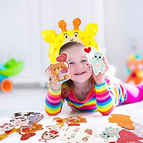 Valentines Day Cards For Kids - 28 Valentine Cards + 28 Inflatable Animal Headbands + 28 Gift Envelopes & Tattoos, Animal Greeting Cards Valentines Exchange Cards for Kids Boys Girls School Classroom