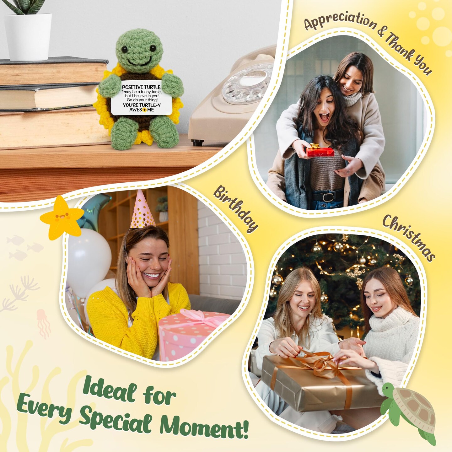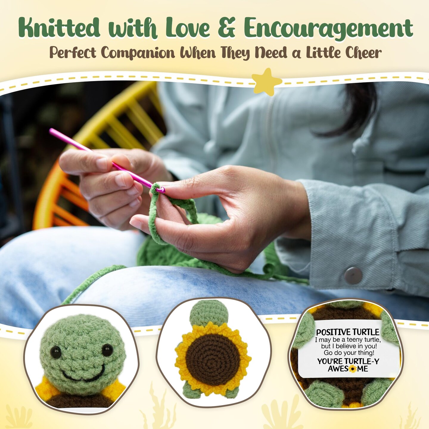 Valentines Day Gifts for Kids Teen - Positive Turtle Crochet Animals, Galentines Birthday Relaxtion Gifts for Teen Girls Boys Daughter Son Mom Dad Sister Friend Women Home Desk Basket Decor