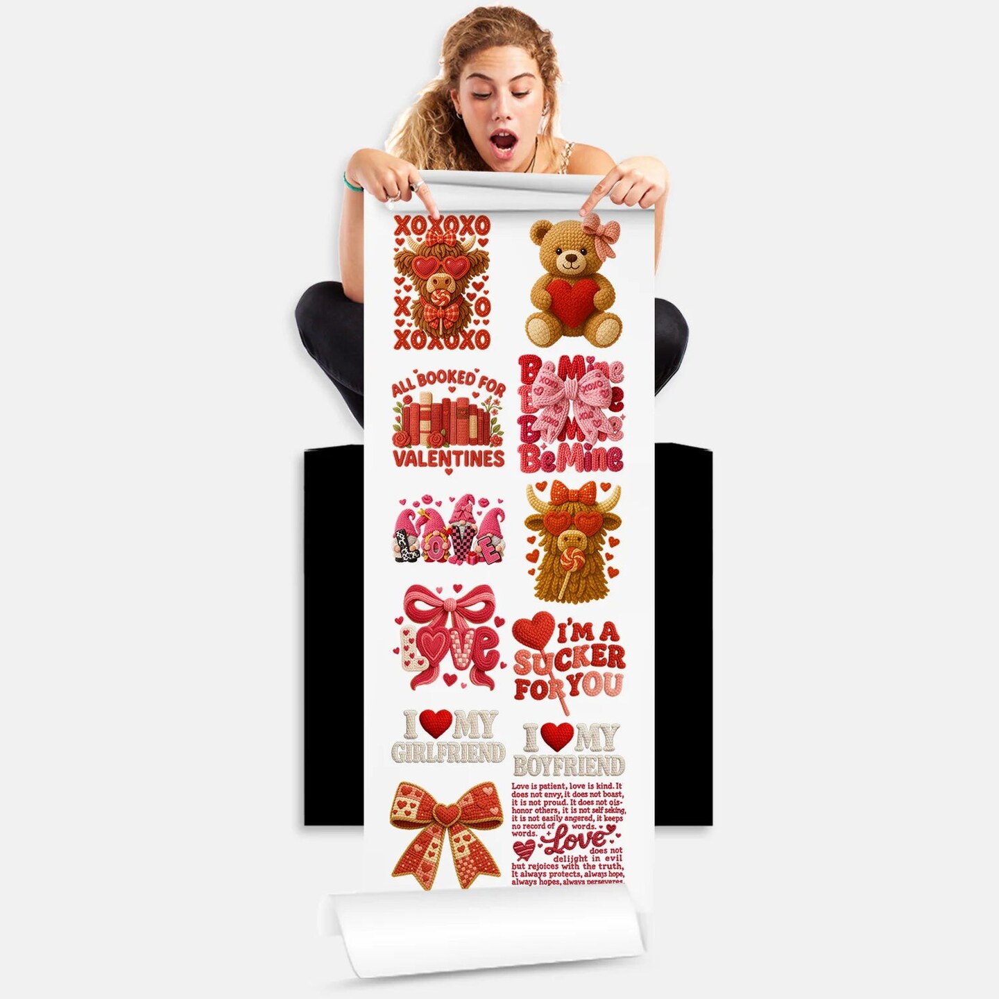 Valentines DTF Transfers - Faux Yarn Sweet Love Romance Gang Sheet - 12 Ready to Press Prints