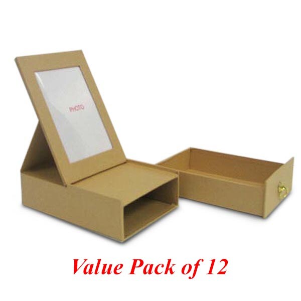 Value Pack of 12 Jewelry Photo Box With Drawer and Gold Finish Pull