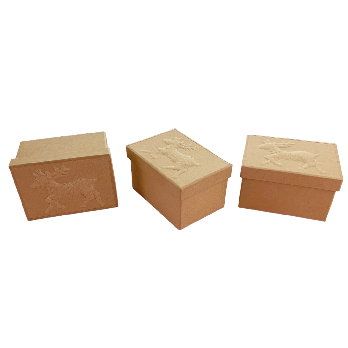 Value Pack of 3 Rectangular Box with Reindeer Embossed Lid