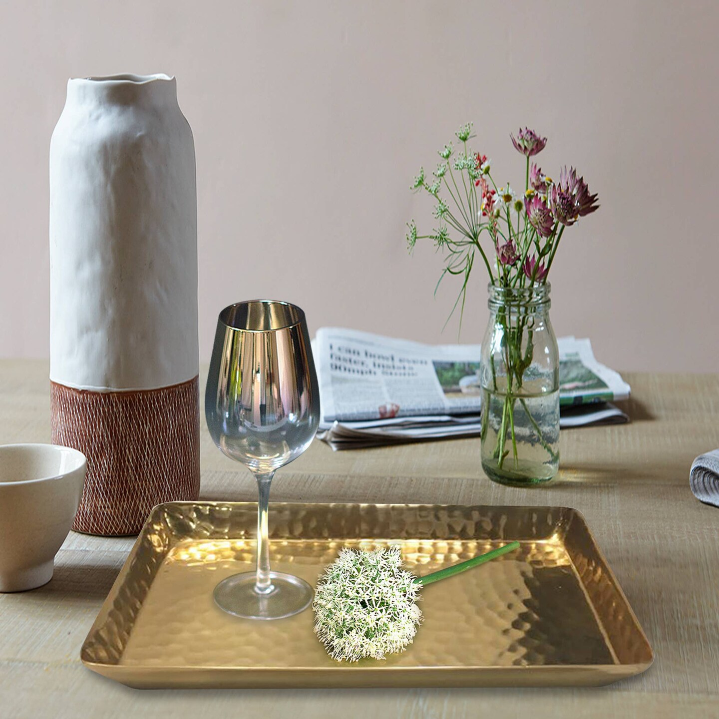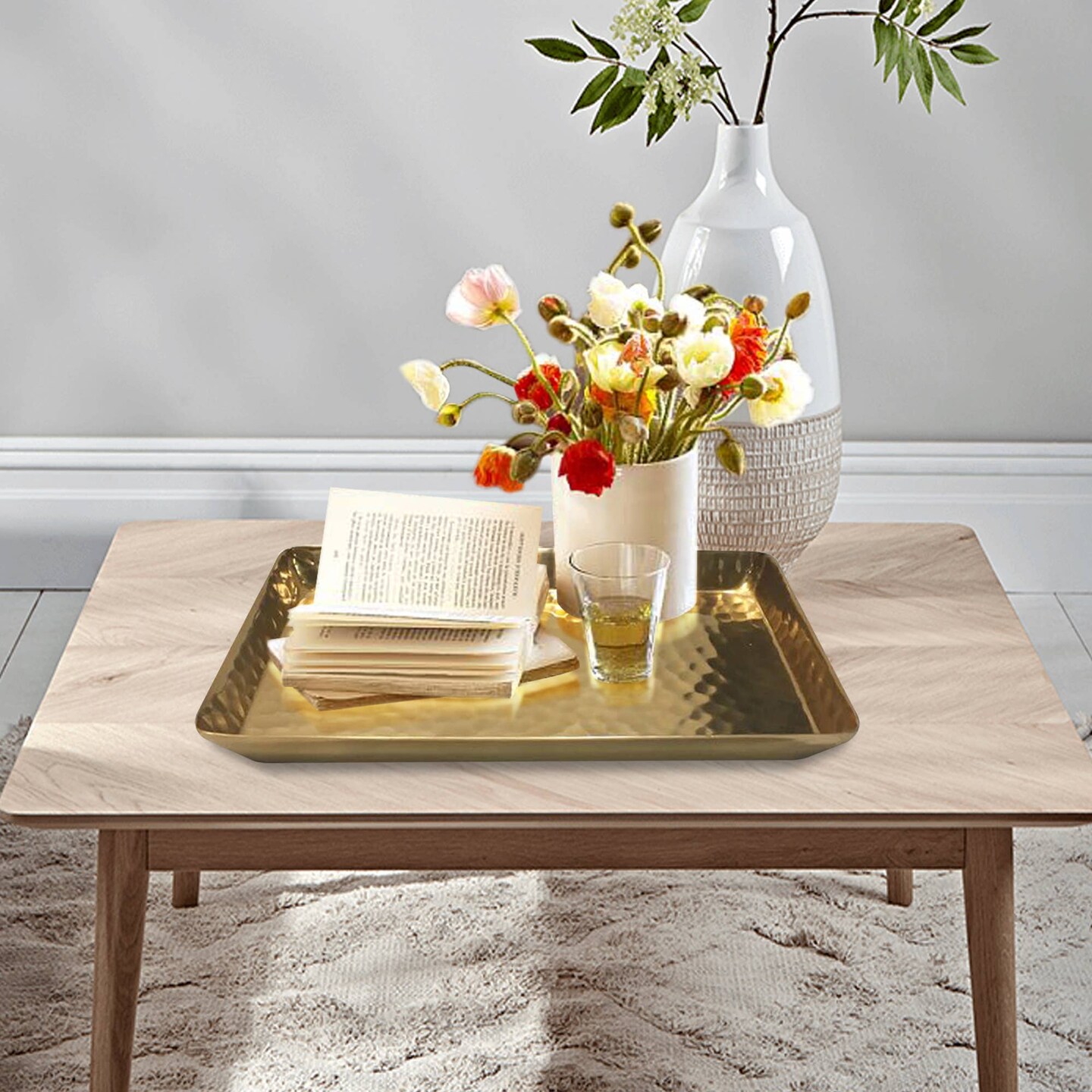 Vanity Tray | Hammered Rectangular Vanity Tray with Padded Bottom | Rose Gold Finish | Stylish & Durable
