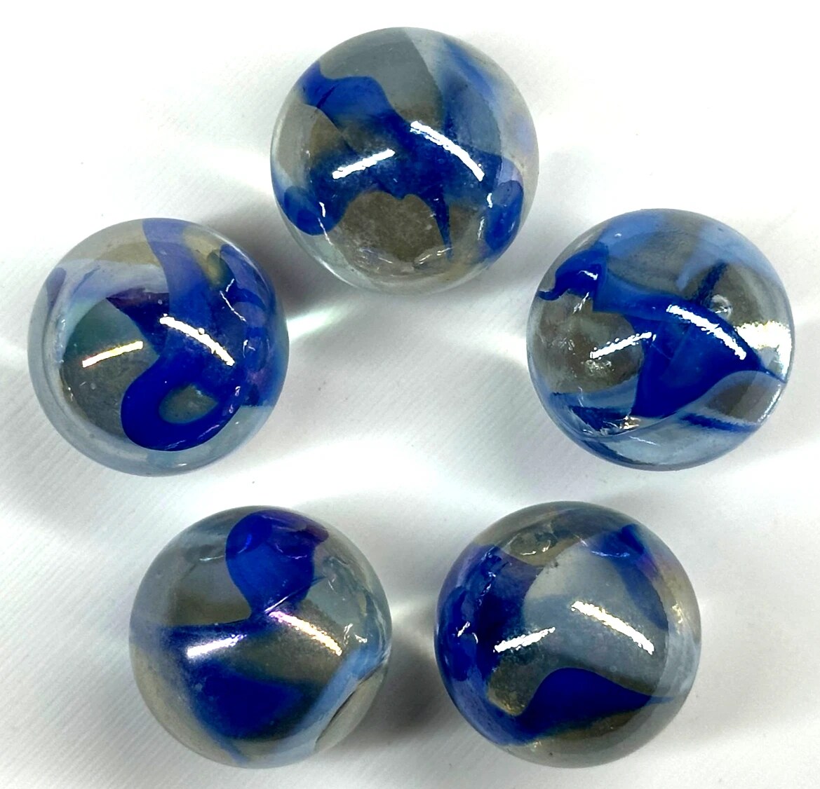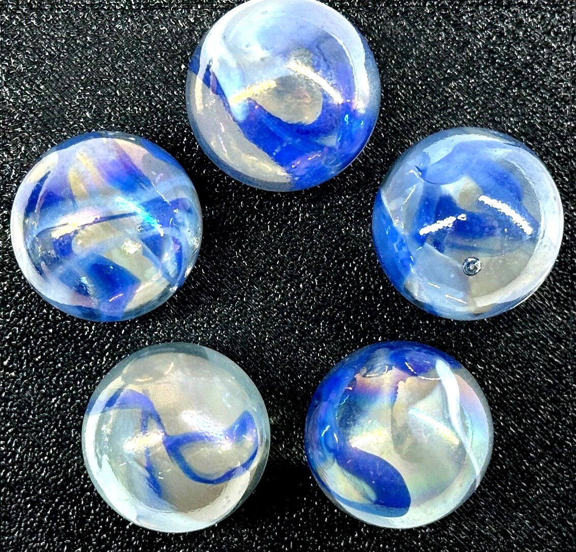 VAPOUR Clear Blue Glass Marbles 22mm (7/8 inch) SHOOTER Taw (Lot of 5)