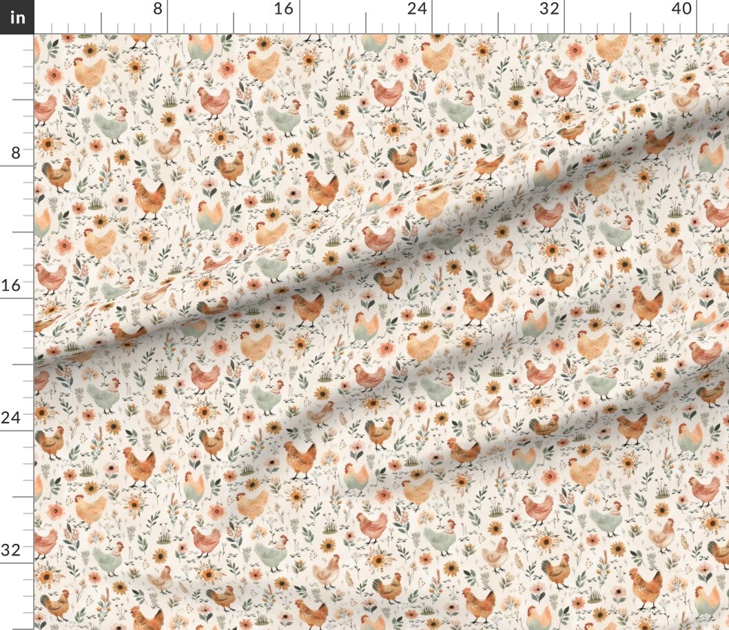 Various Fabrics by the Yard or Fat Quarter Pastel Hens Farmhouse Spring Florals Medium Watercolor Easter Bohemian Baby Nursery Chicken Boho Farm Animal Cottagecore Custom Printed Fabric by Spoonflower