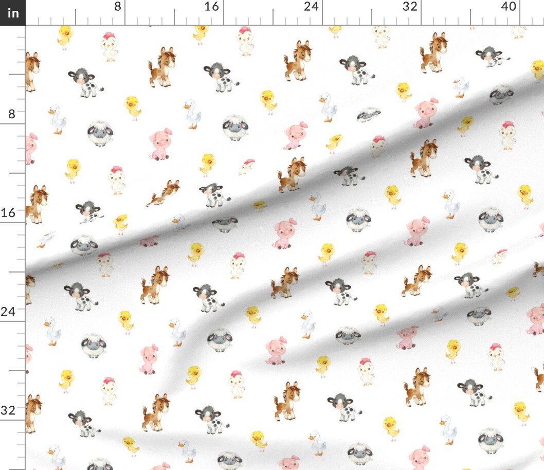 Various Fabrics by the Yard or Fat Quarter Watercolor Baby Animals Horse Sheep Pig Cow Nursery Farm Neutral Chicken Duck Custom Printed Fabric by Spoonflower