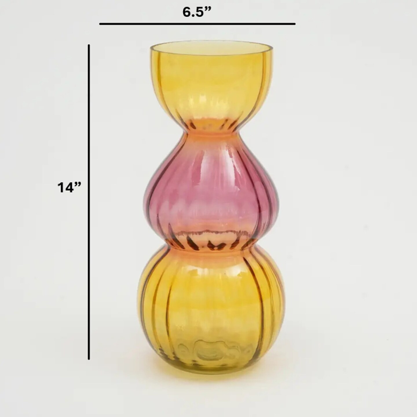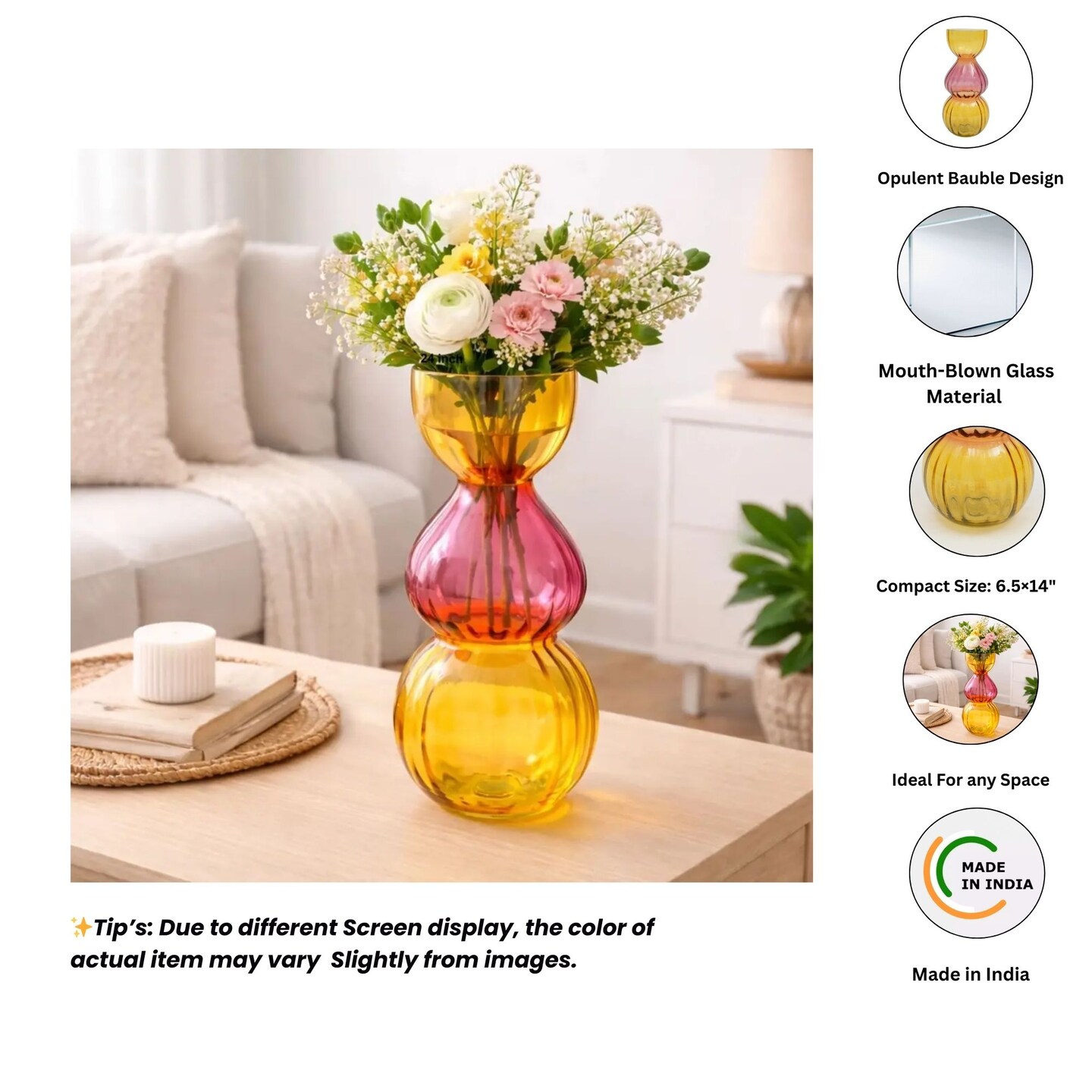 Vase | 14" Long Gleaming Bubble Glass Vase | Stylish Decorative Accent for Modern Home, Office & Contemporary Spaces