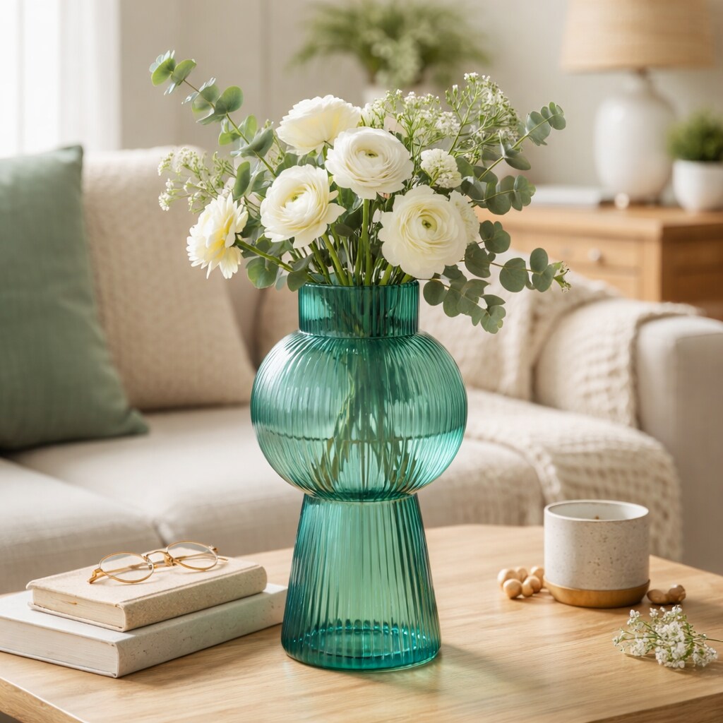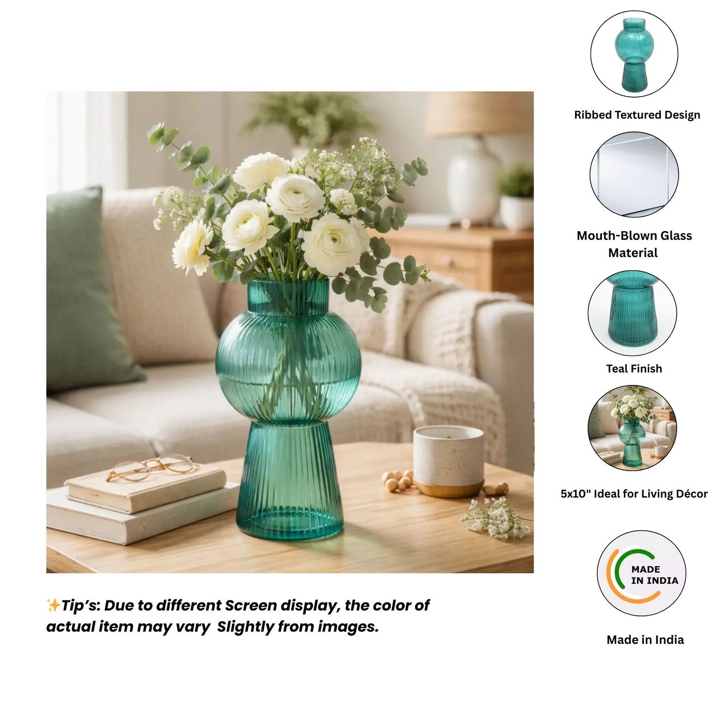 Vase | Modern Funnel Flare Glass Vase | 5x10" | Chic Decorative Accent for Home, Office & Contemporary Spaces